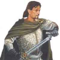 Un rayon de soleil vient frapper la souche sur laquelle s'appuie Abdel. Il étincelle, dans son armure d'argent massif. Lentement, il plante sa grande épée à deux mains dans le sol et ôte son casque d'or surmontée de grandes ailes d'aigle moulées dans le fer des nains de Thrumblow. |