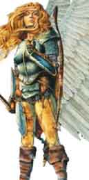 Un arc à l'épaule, un carquois elfique toujours plein dans le dos et une fine lance argentée à la main, elle décolle dans la brise et se pose délicatement au sommet d'un grand arbre inconnu pour voir l'horizon.