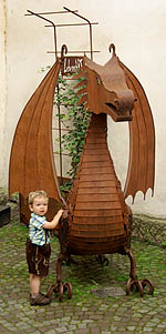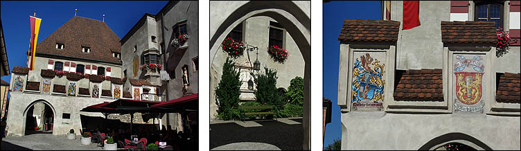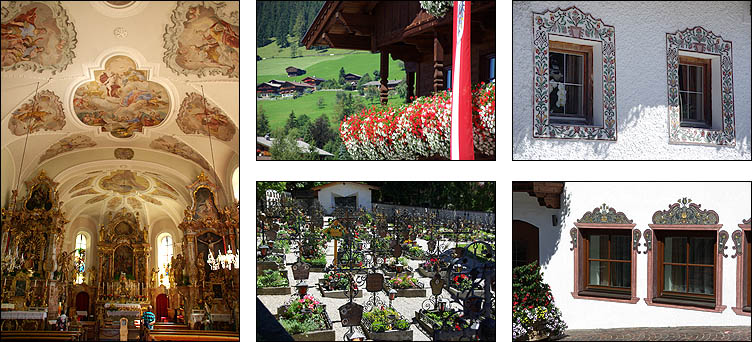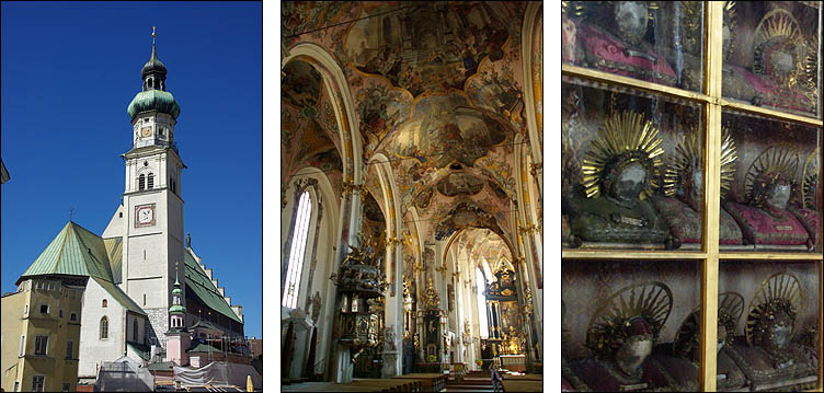 et ses vieilles façades, sur fond de montagnes.![]() ![]() Si le village a bâti sa fortune sur l'exploitation des mines de sel, il est surtout connu pour être le lieu de naissance du "thaler", première devise "internationale", sorte d'Euro avant l'heure, qui donna son nom au dollar. ![]() La Stadtpfarrkirche a débuté sa carrière comme chapelle romane, avant d'être remaniée en style gothique, puis baroque, comme d'hab. On peut y... euh... admirer ? une belle collection de crânes de saints. ![]()