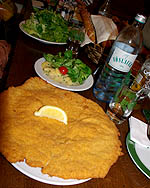 Le veau pané est tant applati qu'il déborde de l'assiette de tous les côtés ! Mais c'est excellent, la réputation n'est pas usurpée.
