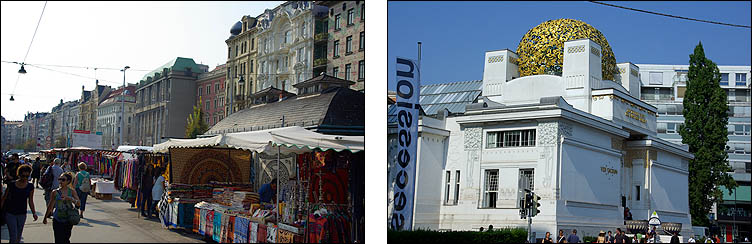 ![]() Sur les hauteurs de la ville, le palais-musée du Belvédère été construit au début du XVIIIème siècle comme résidence d'été du prince Eugène de Savoie. C'est l'un des plus beaux ensembles baroques du monde, avec en prime une magnifique vue sur la ville. Belle collection d'art, notamment moderne : Klimt, Egon Schiele et Kokoshka. Plusieurs salles ont conservé leurs époustouflants trompe-l'oeil, dommage qu'on n'ait pas le droit de les photographier. ![]() ![]() ![]() ![]() ![]() Le Nashmarkt est un marché très sympa, étiré tout en longueur le long d'une interminable place bordée d'immeubles spectaculaires. Si les étals ne sont plus toujours très traditionnels, c'est vivant, coloré, animé... avec même l'épicière qui pousse la chansonnette depuis sa boutique ! ![]() ![]() Après le marché la place continue et se fait simple parking, les façades restent très décorées et étonnantes. Les immeubles ont tant de personnalité qu'ils ont chacun un nom. Les quelques bâtiments plus modernes sont bien intégrés à ce méli-mélo architectural. ![]() ![]() ![]() ![]() Vienne est moins verte que les autres capitales de la région, mais en cherchant, on trouve de beaux parcs, îlots de nature préservés, petits coins rustiques étonnants dans une telle cité. Ci-dessus, Margarethen, belle maison qui dissimule un passage boisé très "Mary Poppins", un vrai rêve d'harmonie urbaine ! ![]() ![]() Portes![]() Toits![]() ![]() Statues![]() |