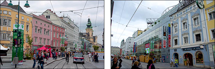 ![]() Bien que Linz soit une importante ville industrielle, et que nous y soyons passés sous un temps assez mitigé, le centre ville est charmant, très bien restauré et bien animé, n'hésitant pas à marier quelques façades modernes aux classiques, baroques et gothiques. Ci-dessus, la Hauptplatz, place principale étirée tout en longueur comme une large rue. ![]() ![]() La mairie ci-dessous, l'Altes rathaus, date de 1514. ![]() ![]() Comme souvent, on a eu la chance de tomber par hasard en plein festival avec des stands de spécialités des alentours, dégustations, artisanat... et du coup tout plein de gens, pas seulement parmi les exposants, en tenues traditionnelles. ![]() La région de Linz est parsemée de lacs, avec de charmantes villégiatures et centres de sports nautiques, certes peu à leur avantage dans le brouillard et la pluie qui se fait insistante. Parmi elles, Mondsee, ci-dessous. ![]()