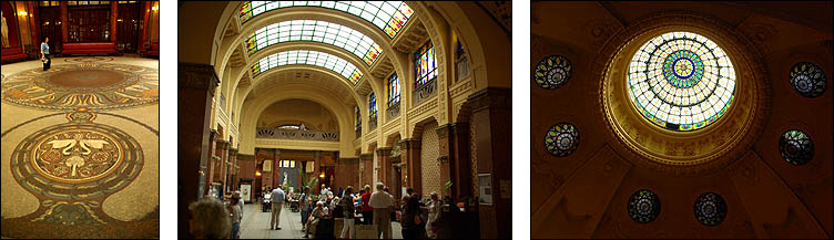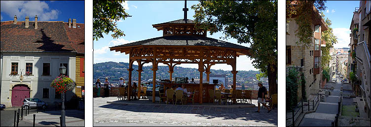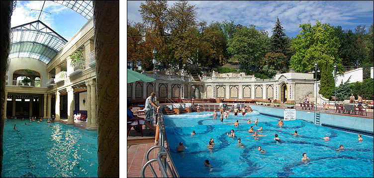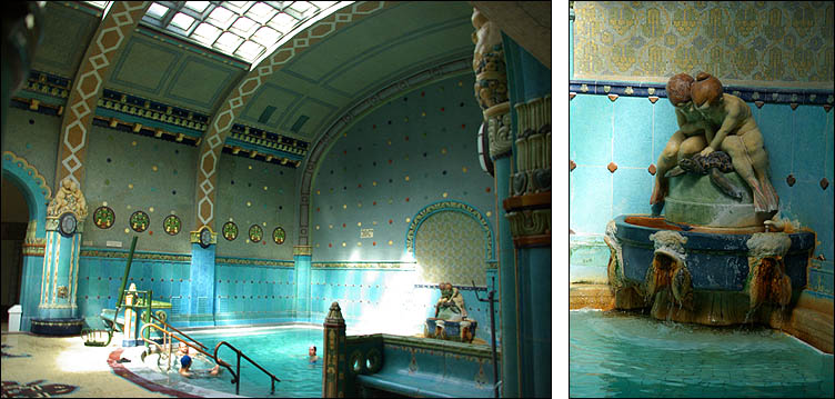 ![]() ![]() L'église Mathias date d'avant 1255. Transformée en mosquée sous l'occupation turque, elle est ensuite très délabrée mais voit quand même le couronnement de l'empereur François-Joseph, avant d'être restaurée en 1873. A gauche la tour Béla, datant du XIIIème siècle, à droite le clocher du XVème. L'église jouxte la place Mathias avec le Bastion des Pêcheurs, de style néo-roman très fin XIXème... qui semble plus sorti d'un dessin animé que d'un livre d'histoire ! ![]() ![]() Les contrastes architecturaux peuvent parfois se mettre réciproquement en valeur... ce n'est pas vraiment le cas ici ! Ci-dessus à gauche la tour St Nicolas, vestige d'un couvent du XIIIème siècle, a été affublée d'un hideux dernier étage moderne. Au centre, l'hôtel Budapest Hilton, achevé en 1976 et controversé (sans blague) est censé refléter harmonieusement les tuiles colorées de l'église Mathias. Mouais... A droite, autre excroissance dont la vieille ville, bien préservée par ailleurs, se serait bien passée. ![]() ![]() Les rues sont bordées de maisons médiévales aux façades de couleurs vives, parfois curieusement style "papier peint". L'ensemble est vraiment très joli et agréable, une ambiance bien reconstituée (car beaucoup ont été reconstruites après la guerre) et pleine de charme, surtout sous ce beau soleil. ![]() ![]() ![]() Ci-dessus le "Labyrinthus Panoptikum"... à éviter ! C'est un attrappe-touriste sans intérêt, qui joue sur la confusion et les indications peu claires pour attirer ceux qui cherchent en fait à visiter une reconstitution d'hôpital souterrain de la Seconde Guerre mondiale. On est certes sous terre, mais sans rien d'autre à voir que quelques mannequins horribles et une petite expo de photographies sur les grottes du monde, belles, mais pas suffisantes pour justifier le temps et le prix de la visite ! ![]() ![]() Certaines maisons particulièrement anciennes ont conservé des éléments architecturaux, tels des passages avec des banquettes intégrées typiques, mais les restaurations successives donnent de drôles de résultats, cadres de fenêtres décalés ou arches romanes au milieu d'un mur. Ci-dessous, l'autre côté de la colline, avec vue sur le reste de la ville. L'escalier descend vers le quartier penché de Vizivàros. ![]() ![]() Véritables institutions de Budapest, les bains sont une expérience incontournable. Parmi les différents établissements célèbres, nous nous sommes offert une petite trempette aux bains Gellért, côté Buda, édifiés en style sécession en 1918, avec une rarissime piscine à vagues datant de 1927 toujours en activité. Outre le spa, l'hôtel comprend un hôpital de jour et tout plein de traitements et cures originales (massage au chocolat, soins Cléopâtre, inhalatorium...). La décoration est luxueuse : mosaïques Zsolnay, vitraux, sculptures, boiseries. Avec un petit massage (quoique un peu décevant) en complément, c'est bien plaisant tout ça pour rincer la poussière de la route ! ![]() ![]() ![]() |