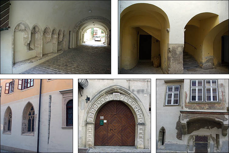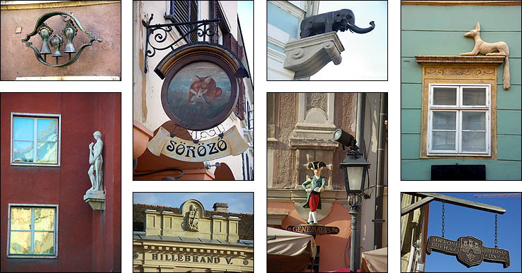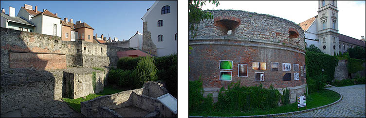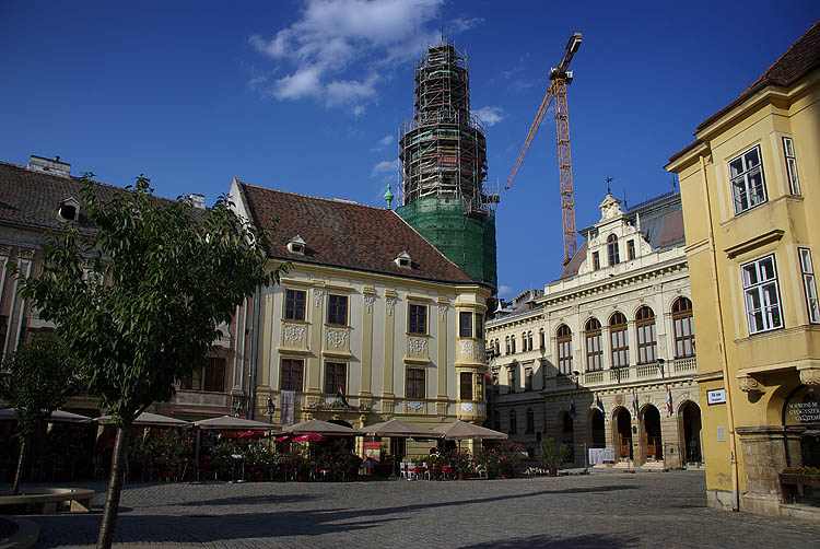 La tour en travaux est la "Tour de Feu", bâtie avec des pierres romaines récupérées. La place Fö Tér est entourée de maisons du XVème siècle, souvent bâties