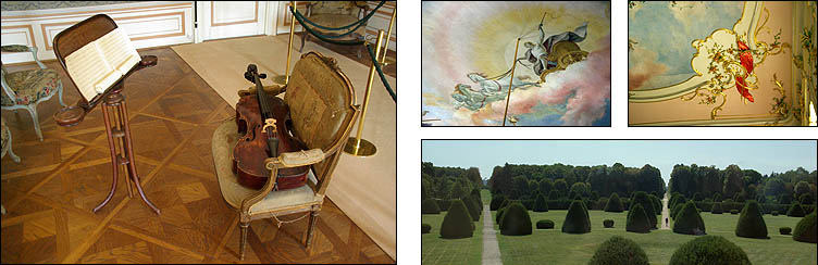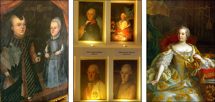 ![]() Le manoir de Nagycenk du XVIIIème siècle appartenait aux Széchenyi, une famille célèbre de Hongrie. Transformé en hôtel de luxe, il propose ses somptueuses écuries (avec des étalons hongrois, évidemment) au milieu d'un immense parc boisé (ses tilleuls ont été plantés en 1754). ![]() Pour une vue panoramique de Fertod ci-dessous, faites défiler avec la barre en bas de la photo. ![]() Fertod est le Versailles hongrois, construit dans les années 1760 et magnifiquement restauré après les bombardements de la Seconde Guerre mondiale. Ce palais appartenait aux Eszterhàzy, l'autre grande famille princière. 127 pièces tout de même, dont certaines sont dallées de marbre blanc de Carrare, et la plupart somptueusement décorées. Le style baroque bucolique donne l'impression d'entrer dans un jardin. ![]() ![]() ![]() Joseph Haydn dirigea pendant plus de trente ans l'opéra du château, et c'est là qu'il composa ses plus grandes oeuvres. Ci-dessus, son violon. Les portraits divers sont parfois peu flatteurs... ou un peu trop réalistes, en tous cas, ils ne présentent pas la famille sous un jour très avenant ! A droite, présente partout, Marie-Thérèse d'Autriche, puissante Reine de Bohême, de Hongrie, de Dalmatie, de Croatie et de Slavonie, Archiduchesse d'Autriche, Grande princesse de Transylvanie, Princesse de Souabe, Duchesse de Bourgogne, de Lothier, de Brabant, de Limbourg, de Luxembourg, de Gueldre, de Haute- et Basse-Silésie, de Milan, de Mantoue, de Parme, de Plaisance et de Guastalla, Margravine de Moravie, du Saint-Empire, de Burgau, de Haute- et Basse-Lusace, Comtesse de Habsbourg, de Flandre, de Tyrol, de Hainaut, de Kybourg, de Gorice et de Gradisca, et de Namur, Dame de Malines et de la Marche windique. Pfiou, ça en fait une carte de visite ! Outre avoir enfanté notre Marie-Antoinette, elle est l'ancêtre de la plupart des familles royales d'Europe.