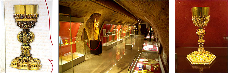 coupes et ciboires font penser à la collection de Graals d'Indiana Jones 3, et il y a même une petite vierge sculptée dans