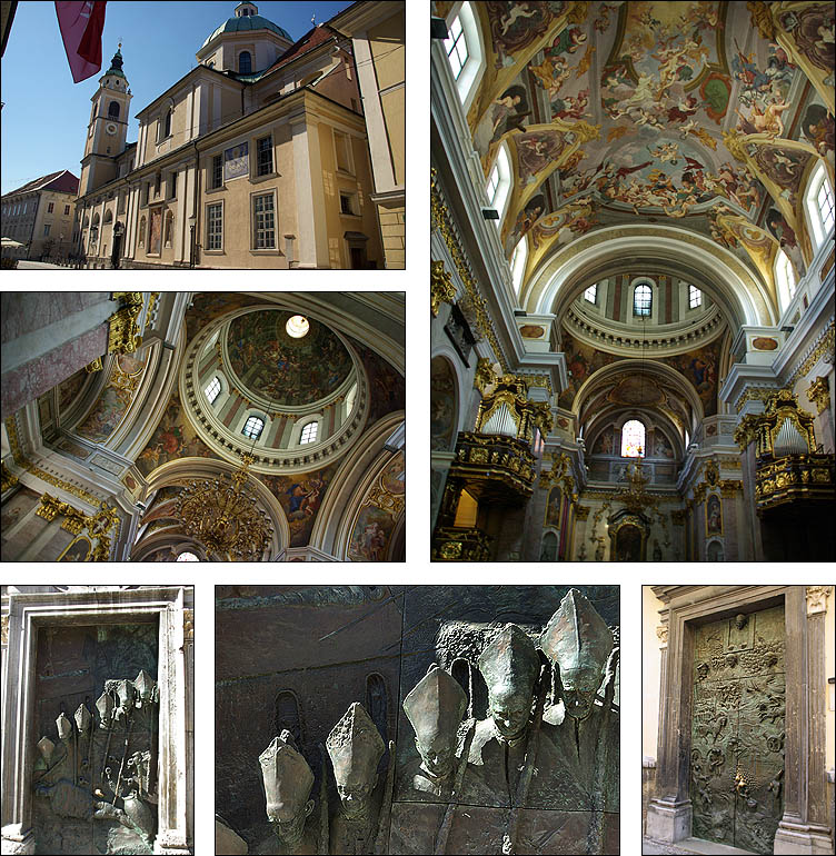 La cathédrale baroque St Nicolas, près du marché central, a d'étonnantes portes modernes avec des têtes en bronze.