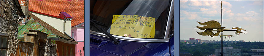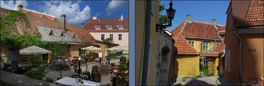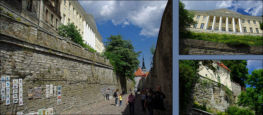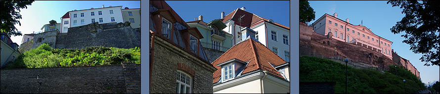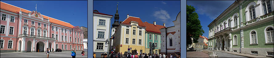 Ci-dessus à gauche, le palais rose a été construit par la Grande Catherine au XVIIIème, et abrite aujourd'hui le Parlement, le Rigikogu. En face,