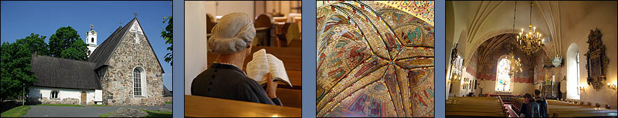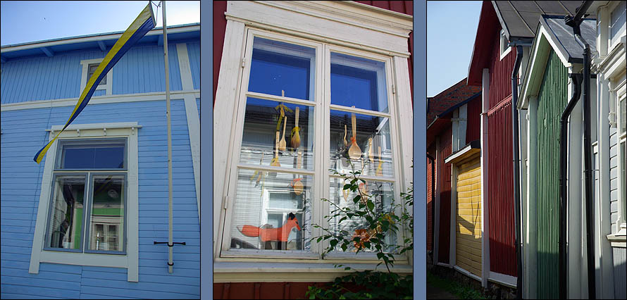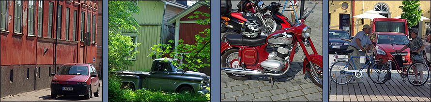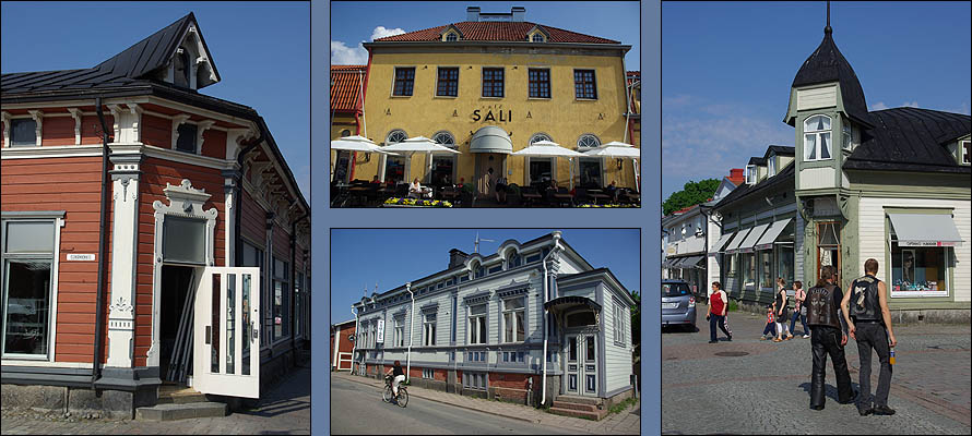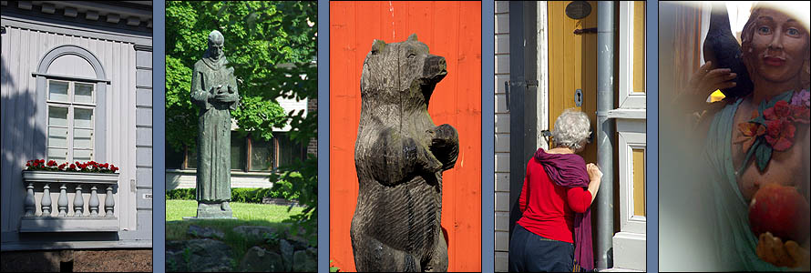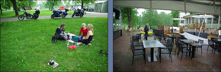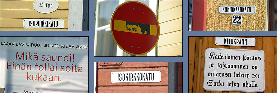 ![]() Nous avons la grande chance de découvrir la Finlande en compagnie d'un super guide motard, un pote du cru qui en prime connaît du monde partout. Du coup, à chaque étape, nous avons été chaleureusement reçus par ses amis motards et sa propre famille, une immersion idéale dans un pays qui nous a beaucoup plu. Nous attaquons ce parcours par la petite ville de Rauma, dont le vieux centre en bois est classé Unesco. ![]() Surprise, on trouve ici des brochures touristiques et des menus en français ! Non que le tourisme hexagonal soit si actif, mais une coopération pour une centrale nucléaire à proximité attire pas mal de francophones. Cette ville est un ancien port, mais manque de bol, la mer se dérobe de plus en plus loin à mesure que le continent remonte depuis la période glaciaire d'un mètre par siècle. Il reste une ambiance calme et une grande unité architecturale, due à ses 600 maisons en bois de toutes les couleurs, datant de la fin du XVIIème siècle. ![]() ![]() ![]() Le finnois, c'est déjà pas facile, une langue sans racines communes avec le reste des langues européennes, uniquement parente de l'estonien et du hongrois (groupe finno-ougrien), et qui n'a commencé à être écrite qu'à partir du XVIème siècle. D'ailleurs, la Finlande n'est pas un pays scandinave, et sa langue a une syntaxe totalement étrangère, une prononciation impossible, et une grande promo sur les voyelles, présentes en masse. Alors quand on vous dit que par dessus tout ça, à Rauma, on parle un dialecte très particulier, mêlant le finnois, l'anglais, le vieux flamand, le suédois et l'estonien, incompréhensible pour les autres Finlandais, ça en dit long (exemple ci-dessus à droite). ![]() ![]() Dans la charmante petite église, nichée au bord d'un canal romantique, une paroissienne assidue lit son missel sans bouger. On est attentifs à ne pas faire de bruit, elle est vraiment très concentrée. C'est en fait une statue ! Pour peupler un peu les bancs déserts ? ![]() ![]() Mais qu'y a-t-il derrière cet étrange trou de serrure que tout le monde reluque ? Une Eve tentatrice... Ce qui s'appelle une attraction bien cachée. ![]() ![]() L'étape suivante est un délicieux pique-nique en charmante compagnie à Pori, un peu plus au nord. On déguste notamment du boudin à la confiture d'airelles (musta makkara) et un super café maison. Mais avant d'arriver au dessert, sans parler de faire un tour en ville, le ciel s'ouvre en deux et nous tombe sur la tête en un impressionnant déluge. Le temps qu'il se calme, nous sommes trempés et il faut reprendre la route. Mais ce sera la dernière humidité de tout le voyage, qui restera au beau fixe jusqu'au retour, on ne se plaint pas ! ![]() | ||||||||||||||||||
