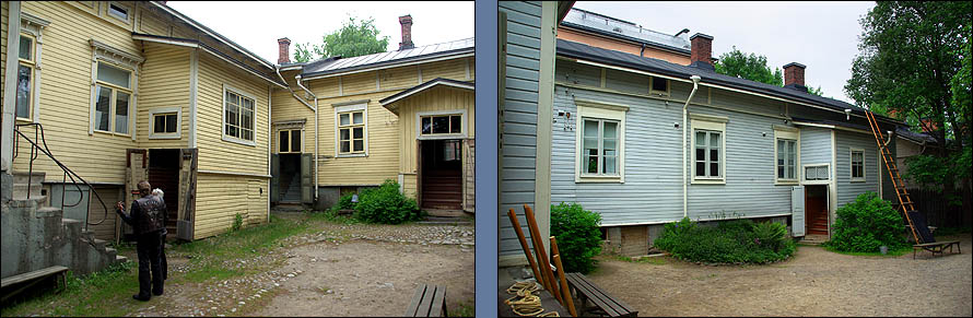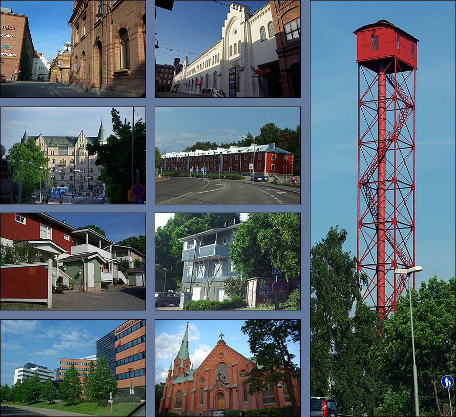 ![]() La route pour Tampere traverse des forêts, des forêts et des forêts, pratiquement sans un seul virage. Sur la selle arrière, la passagère s'endort consciencieusement, et le conducteur n'est pas loin d'en faire autant. Nous posons les affaires au camping Härmälä, abordable et correct, et partons pour un tour de la ville avec un autre copain habitant ici. Tampere est la deuxième ville du pays, un pôle industriel actif installé de façon étonnante sur le mince isthme séparant deux lacs ayant une différence de niveau de 18 mètres. Idéal pour utiliser la force de l'eau, c'est pourquoi dès le début de l'ère industrielle les usines s'y établirent nombreuses, contribuant largement à l'essor économique de la Finlande. ![]() Sa tour aux faux airs de Seattle fait profiter d'une vue magnifique sur les environs. Ces lacs semblent chacun être une petite mer ! Les lacs sont une spécialité finlandaise, le pays en compte près de 200.000, de toutes les tailles. ![]() Au pied de la tour du parc Särkamniemi, une petite fête foraine attire les gens de loin, ces installations n'étant pas courantes dans ces pays. ![]() Ci-dessus à gauche, les robes traditionnelles aux hanches rembourrées sont typiques des tziganes locaux. A droite, échanges entre biker et demoiselle en tenue d'époque à l'incontournable musée Amurin Työläismuseokortteli, ci-dessous. Il s'agit de la préservation du quartier Amuri, qui illustre l'habitat ouvrier de 1882 à 1973. ![]() Chaque pièce est meublée et décorée dans les moindres détails, selon l'année qu'elle représente, avec le nom et l'histoire des gens qui y ont habité. C'est très bien fait et émouvant, manque seulement les odeurs et les rats, d'après les anciens habitants présents lors de l'inauguration. Tous ces gens qui ont passé leur vie de travail incessant, dans une seule pièce avec 5 à 6 enfants, ou en partageant une seule chambre à 3 ou 4 ouvrières, sans aucune intimité, sommaire cuisine commune, sanitaires extérieurs (et sauna, bien sûr, c'est la Finlande)... A mesure que les années passent, les conditions s'améliorent un peu, les lits pliants deviennent plus confortables, la télé fait son apparition, certains logements de contremaîtres deviennent même presque cossus. Un vrai voyage dans le temps, sachant que nos propres grands-parents ont pu vivre dans des conditions très similaires en France. ![]() Finlayson est aussi devenu un musée et centre culturel mais on n'a pas eu le temps de le visiter. C'est un exemple de ville-usine, où les manufactures possédaient leurs propres logements, écoles, hôpitaux, commerces. Les ouvriers étaient ainsi pris en charge pratiquement de la naissance à la mort. Ci-dessous à droite cette tour servait à fabriquer des munitions en plomb à l'époque où les presses manuelles n'étaient pas suffisamment puissantes. Lâchés dans le tube, c'est l'accélération de la gravité et l'impact en s'écrasant en bas qui en faisait office. Imaginez les jambes des gars chargés de remonter toute la journée, toute l'année, notamment dans le froid de l'hiver nordique, des charges de plomb jusqu'en haut... ![]() ![]() La curieuse église moderne Kalevan kirkko, de Reima Pietilä (1966) évoque tout sauf une église. Ca change des chapelles pluricentenaires en bois debout. ![]() | ||||||||||||||||||