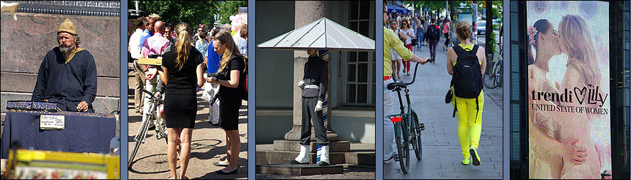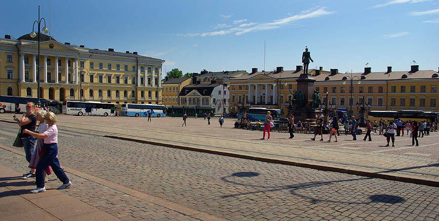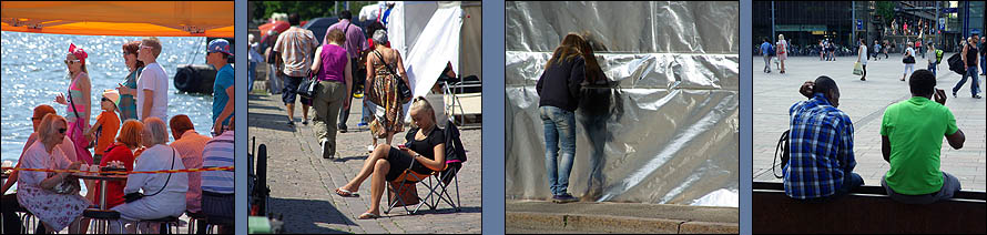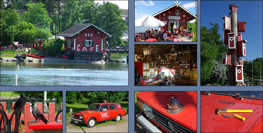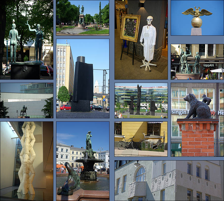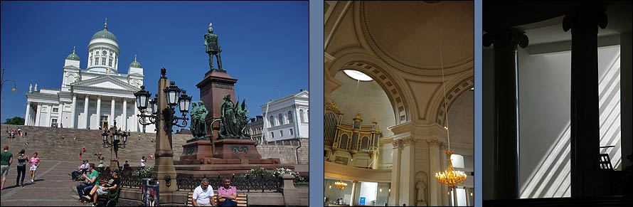 ![]() Du haut de la place du Sénat, au style franchement russe, l'immaculée cathédrale luthérienne domine la ville. Tuomiokirkko est flanquée du palais du gouvernement et de l'université. ![]() En face de la cathédrale, Sederholm (ci-dessous au centre) est la plus ancienne maison de la ville, seule à avoir survécu aux incendies, elle date de 1757. ![]() Uspenskin Katedraali change de style. Adieu la sobriété luthérienne, place aux dorures orthodoxes ! Héritage évident de l'occupation russe, plus grande église orthodoxe d'Europe de l'ouest (avec celle de Nice), elle est perchée sur la presqu'ile de Katajanokka et fait avec la blanche cathédrale un remake des Deux Tours ;-) ![]() La ville ne manque décidément pas de lieux de culte, certains étant plus originaux, comme ci-dessous Tenppeliaukion Kirkko de 1969. Eglise circulaire creusée dans un affleurement de granit, son dôme est couvert d'herbe et, avec son acoustique parfaite, elle accueille des concerts. ![]() Autre très belle variation sur le thème de la chapelle, la toute nouvelle Kamppi Chapel du Silence est un étonnant bâtiment de bois courbé à l'ambiance utérine d'une grande sérénité. Tous les sons extérieurs y sont annulés, et quand on s'étale sur de confortables coussins en forme de pierre molle, il faut prendre garde à ne pas s'endormir en sursaut après des kilomètres de marche urbaine ! ![]() ![]() Les cheveux de couleur ont un franc succès dans le Grand Nord, attendons-nous à ce que la mode traverse bientôt la Baltique, si ce n'est déjà fait ! Le rose est de loin favori, mais les variantes de bleu, vert, violet et mélanges sont aussi de mise. En parallèle, pour rester fidèles à notre grande tradition, on croise quelques personnes en costumes... plus ou moins traditionnels. ![]() ![]() ![]() ![]() ![]() ![]() ![]() ![]() Un peu à l'écart de l'agitation du centre ville, le charmant café Regatta à l'intérieur original, l'extérieur bucolique et les pâtisseries sympa, nous accueille le temps d'une pause, en retrouvant des amies finlandaises. ![]() Proche du café, dans le Bois de Vincennes local, se trouve cet étonnant monument de Eila Hiltunen (1967) en hommage au compositeur Jean Sibelius, notamment auteur du sublime "Finlandia". ![]() | ||||||||||||||||||