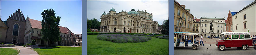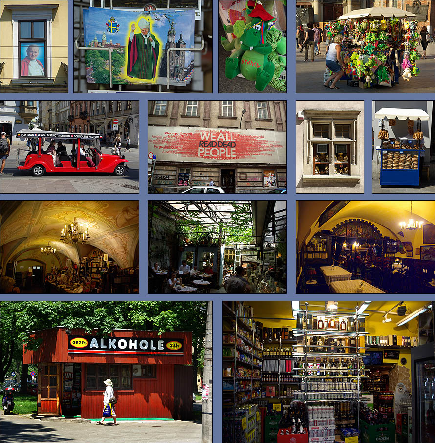 ![]() ![]() Dans l'enceinte du château, la Katedra na Wawelu, fondée par Boleslav le Vaillant vers l'an 1020, conserve des restes romans. L'essentiel de son architecture actuelle date tout de même du XIVème siècle. Détail encore plus ancien : le pendentif géant accroché près de l'entrée, fait d'os de dinosaures ! C'est une sorte de Panthéon local, où tout héros ou célébrité qui se respecte s'est fait enterrer au cours des siècles. Elle offre un chapelet de chapelles aux architectures différentes et toutes magnifiques... dommage d'y être autant bousculé par les hordes de visiteurs. ![]() ![]() ![]() Ci-dessus le théâtre Slowacki est ouvertement inspiré de l'opéra de Paris. A droite, les omniprésents minibus pour les camps de concentration. Dessous, en passant le pont, on accède au quartier Kazimierz, élevé sur l'ancien quartier juif, dont il reste pourtant quelques vestiges. Il n'a commencé à être restauré qu'à partir des années 1990. La place aux chaises vide symbolise les gens qui ont dû partir en abandonnant tout. ![]() Longtemps ville indépendante, le quartier Kazimierz n'a été rattaché à Cracovie qu'au début du XIXème. La ville comptait alors un quart de Juifs, c'était le centre de la vie culturelle juive d'Europe de l'Est. Il subsiste des boutiques aux noms évocateurs mais dont il est permis de douter de l'authenticité, et des restaurants aux noms encore plus évocateurs dont il n'est pas permis de croire à l'authenticité. ![]() ![]() ![]() Ci-dessus à gauche, la pharmacie Pod Ortem, du docteur Tadheusz Pankiewicz, le seul Polonais non juif qui resta travailler et vivre dans le ghetto pendant l'occupation nazie, et qui s'efforça d'apporter son aide autant qu'il le pouvait. Dessous, la synagogue Remu'h, que l'on visite dûment équipé d'une kippa, date de 1558 et est l'une des plus petites du monde. Les nazis en avaient fait un entrepôt de sacs mortuaires... et avaient détruit son cimetière. Mais après la guerre, les fouilles ont permis de dégager 700 pierres tombales, certaines datant de la Renaissance, qui ont retrouvé leur place. Celles qui étaient trop cassées ont été incluses dans le mur d'enceinte. ![]() Autre "Juste parmi les nations", Oskar Schindler, rendu célèbre par le film que lui a consacré Spielberg. La visite de son usine où il a employé - et sauvé - 1100 Juifs de la déportation est très émouvante. Industriel allemand, membre du parti nazi, profitant d'une main d'oeuvre plus que bon marché, il s'est ensuite rendu compte de ce qui se passait vraiment. ![]() Certaines salles exposent le mobilier et le mode de vie d'avant guerre, d'autres évoquent la guerre et l'holocauste de façon impressionnante. Nous n'avons pas souhaité visiter Auschwitz, mais cet aperçu suffisait à évoquer l'horreur de cette période. Ci-dessous, le bureau original de Schindler, reconstitution d'un appartement surpeuplé dans le ghetto et d'une cachette dans les caves, scène de rue et tramway des années 30, témoignages des survivants, mini-tank individuel et évocation des camps de la mort. ![]() ![]() Un saut en tramway conduit au quartier de Nowa Huta, qui représentait la ville ouvrière idéale "conçue pour exalter l'avènement de l'homme nouveau, affranchi de la religion et libéré par le travail collectif". Elle a été bâtie dans les années 50 autour d'un complexe sidérurgique pour 150.000 personnes, lesquelles étaient très fières d'y vivre. Aujourd'hui, son avant-garde évoque surtout des rangées de HLM sans grand charme, mais avec quand même de nombreux jardins, il y a bien pire ailleurs. La première église n'y a été élevée qu'en 1970, la curieuse Arche, ci-dessous. ![]() En parlant d'église, John-Paul II est omniprésent, on est vraiment dans le culte de la personnalité avec des débordements d'un kitsch absolu. Autre mascotte locale, le petit dragon vert tiré de la légende de la mine de Wieliczka. ![]() S'il est un commerce qui ne manque pas, c'est bien le débit d'alcool... à toute heure, ces temples de la cuite s'offrent aux clients de tous âges et genres. D'ailleurs, saviez-vous que quand on dit "Saoul comme un Polonais", c'est en fait un compliment, désignant quelqu'un qui tient très bien sa vodka ? Il vient de Napoléon, en pleine attaque soudaine, ses troupes avaient trop picolé pour être efficaces, contrairement aux unités polonaises... qui n'avaient pas moins bu. Donc, "Soyez saouls, Messieurs, mais saouls comme des Polonais !". Ci-dessous, deuxième photo, un des jobs les plus ennuyeux du monde : teneuse de panneau ! ![]() | ||||||||||||||||||