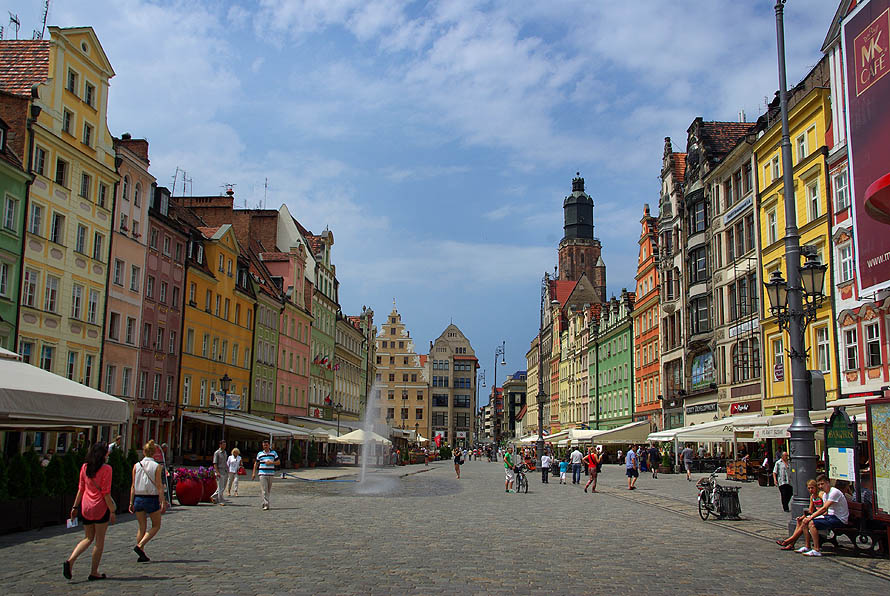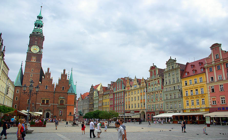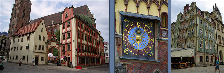 ![]() Autrefois nommée Breslau, Wroclaw est la quatrième ville de Pologne. Surnommée la ville aux cent ponts, elle est bâtie sur l'Oder et plusieurs de ses affluents. C'était une ville hanséatique très riche, en partie détruite pendant la guerre, occupée par l'URSS, bien restaurée... ça vous rappelle quelque chose ? Normal, l'histoire se répète. En tous cas c'est une bien jolie étape pour boucler le tour du pays, ou le débuter si vous arrivez par le sud-ouest. Ci-dessus à droite, la petite rue Stare Jiadki avec ses anciennes échoppes du XIIIème siècle, aujourd'hui boutiques d'artisanat. ![]() L'hôtel de Ville est de la fin du XIIIème siècle, et la Grand'Place est bordée de superbes maisons style baroque et Renaissance flamande. Seules quelques très laides façades soviétiques détonnent au milieu d'un superbe ensemble. ![]() ![]() ![]() ![]() ![]() ![]() Le centre-ville est colonisé par de nombreux lutins grandeur nature. Jeu de piste amusant pour les trouver ! ![]() ![]() Dans le prolongement de l'université (ci-dessus à gauche et au centre), l'église des Jésuites Kosciól Najswietszejo Imiena Jezus (il manque pas mal d'accents et de cédilles bizarrement placés, mais ça passe pas, désolé !), à droite. Commencée en 1698, elle n'a jamais été terminée, d'autant que la ville était surtout protestante. Détail qui a choqué à l'époque : les statues de Noirs et d'Asiatiques qui symbolisaient les nouveaux mondes... ![]() ![]() Au-delà d'un des nombreux ponts, on arrive sur Wyspa Piaskowa, l'île de sable, avec l'église Notre-Dame de Sables (le nom un peu tiré par les cheveux vient du sable des arènes où étaient martyrisés les premiers chrétiens). Datant tout de même du XIVème siècle, elle propose une petite crèche animée, mais ne faites pas le détour exprès. ![]() ![]() ![]() ![]() ![]() | ||||||||||||||||||