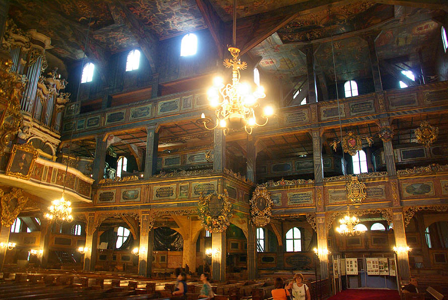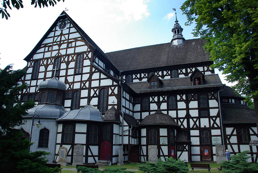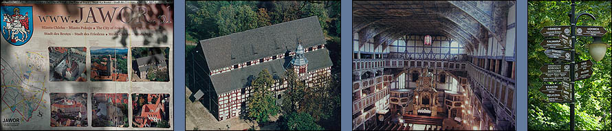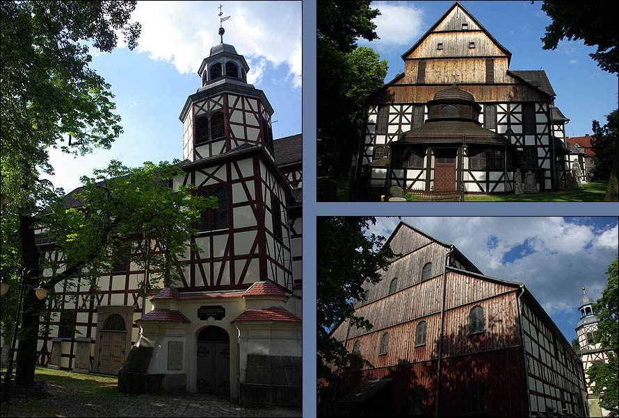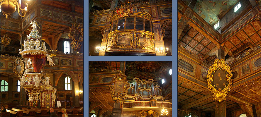 ![]() Un peu plus loin sur la route vers l'Allemagne, de magnifiques églises en bois dites "de la paix" concluent en beauté ce tour de Pologne. Pour situer le contexte : le traité de Westphalie met fin à la Guerre de Trente ans en 1648 : la foi du souverain doit être adoptée par tous ses sujets. Or la Silésie protestante est dirigée par les Habsbourg catholiques. Une clause exceptionnelle autorise la construction de trois églises luthériennes, à condition qu'elles soient hors la ville, ni en pierre ni en brique. Ils s'attendaient peut-être à ce que les Luthériens se contentent de bicoques en bois comme lieu de culte... raté. ![]() Malgré ces restrictions, ce sont de véritables cathédrales de bois capables d'accueillir des miliers de fidèles qui s'érigent grâce à l'architecte Albrecht Von Säbisch. Nous voyons d'abord celle de Swidnica (1657)... et force est de constater qu'on est en effet bien loin de la simple cabane... de même que la traditionnelle sobriété luthérienne. Un petit côté revanchard sur les catholiques ? ![]() ![]() Si si, tout est en bois, promis ! Ne vous laissez pas impressionner si une babouchka rébarbative veut vous empêcher d'entrer, ces sites magnifiques classés à l'Unesco sont bien ouverts au public. ![]() ![]() C'est ensuite l'immense église de Jawor, avec son plan en croix à trois nefs et sa capacité de 6000 fidèles. ![]() Celle-ci était hélas fermée, la journée touchant à sa fin, les photos ci-dessous sont prises sur les panneaux à l'extérieur. ![]() ![]() Ultime étape au village de Zgorzelec. De l'autre côté de la rivière, c'est la ville allemande de Görlitz et le début officiel de la route du retour. Ci-dessous, le très chouette hôtel-appartement Nyskie, sur la rue Dafzynskiego, chambre immense, accueil adorable... chaudement recommandé. ![]() ![]() ![]() | ||||||||||||||||||