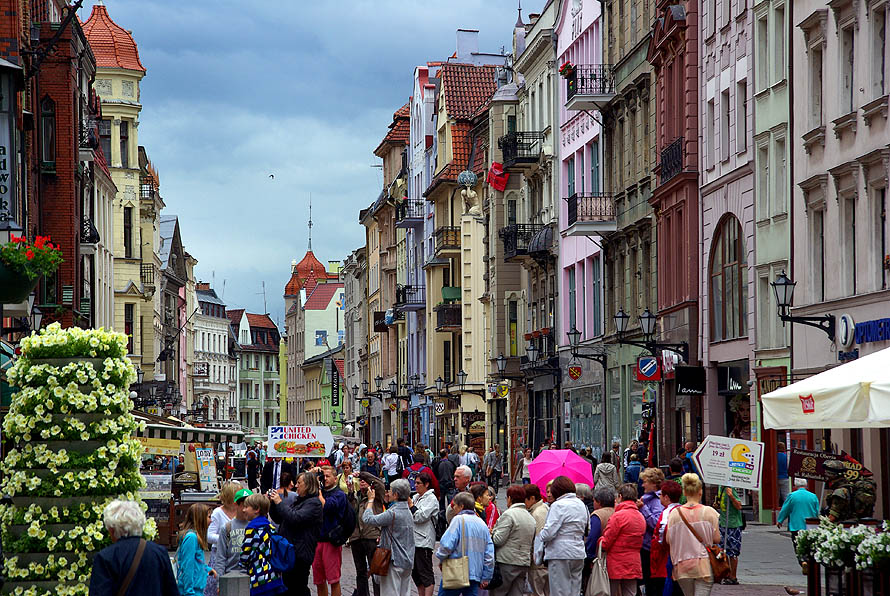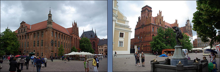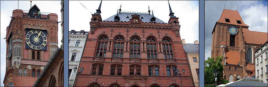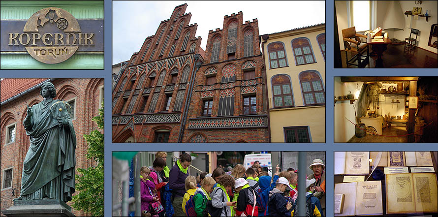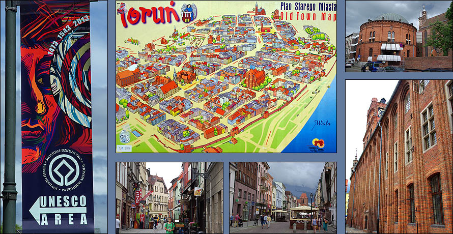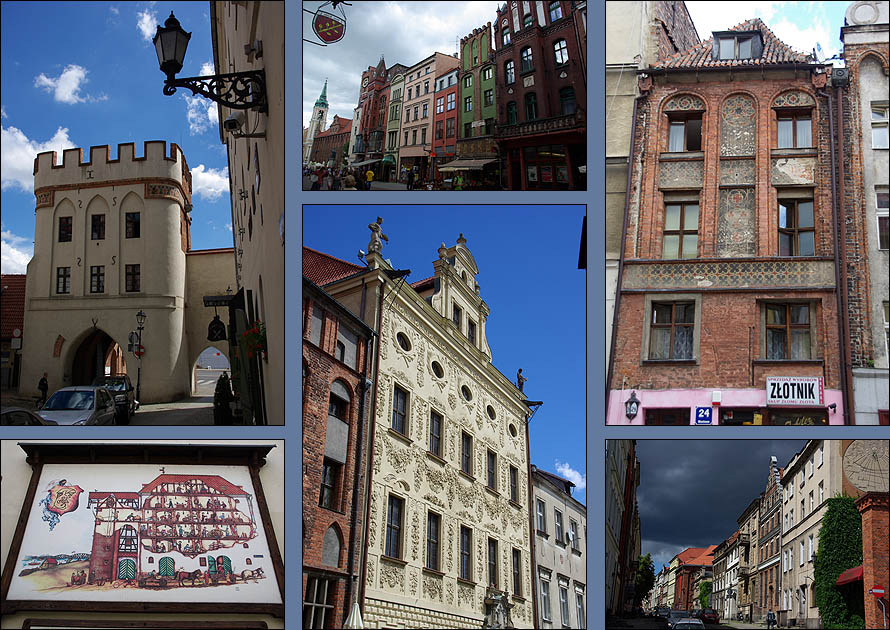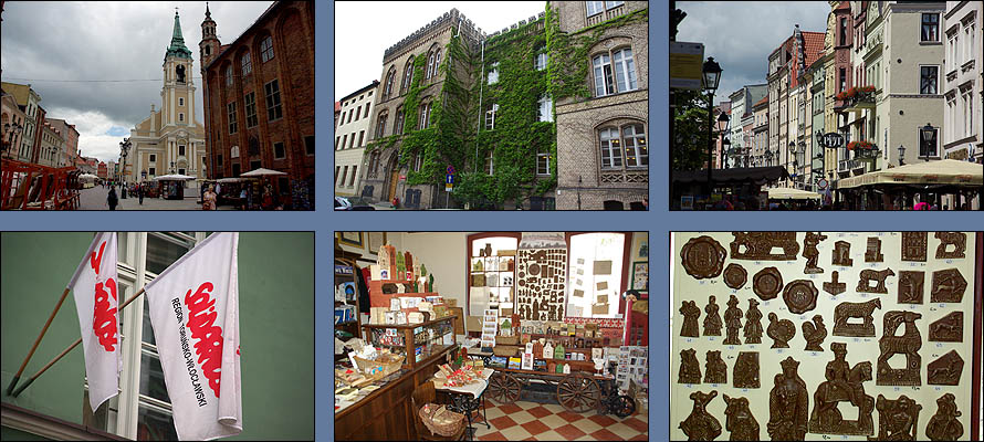 ![]() A mi-chemin entre Gdansk et Varsovie, Torun est classée à l'Unesco pour son exceptionnel patrimoine de bâtiments médiévaux en brique. Les Chevaliers Teutoniques développent cette ville au bord de la Vistule en 1233 pour préparer la conquête de la Prusse. Elle entre ensuite dans la Ligue hanséatique. ![]() ![]() La version locale du joueur de flûte le fait ici s'occuper des grenouilles avec un violon... chacun son fléau. A côté, l'emblème du bateau rappelle qu'on peut être une grande ville portuaire même loin de la mer. C'était aussi le cas de Paris en son temps... ![]() ![]() L'hôtel de ville date des XIII et XIVème siècle, évidemment remanié au XVIIIème. ![]() Ci-dessus au centre et à droite, les pains d'épice, ou piernikis, ou toruns, sont une spécialité depuis le XIVème siècle. On les trouve dans une grande variété de formes, et les moules sont de petites oeuvres d'art. Ci-dessous, la maison de l'enfant prodige et emblème de la ville, l'astronome Nicolas Copernic (1473-1543). Plusieurs musées lui sont consacrés, celui-ci n'était pas indispensable (belle maison, mais pièces sommairement reconstituées et explications uniquement en polonais), mais le personnage est passionnant : outre le mouvement des astres, il s'intéressa à l'économie où il fit aussi de grandes avancées. ![]() ![]() Ci-dessus, la cathédrale St Jean date de la seconde moitié du XIIIème. Amusant comme les bâtiments de brique (certes bien restaurés) semblent souvent moins âgés qu'ils ne le sont. Elle a vu notamment le baptème de Copernic, mais aussi des scènes tragiques pendant la guerre où elle fut transformée en hôpital de fortune. Ci-dessous, d'autres beaux bâtiments anciens en approchant des remparts, le long du fleuve. ![]() ![]() | ||||||||||||||||||