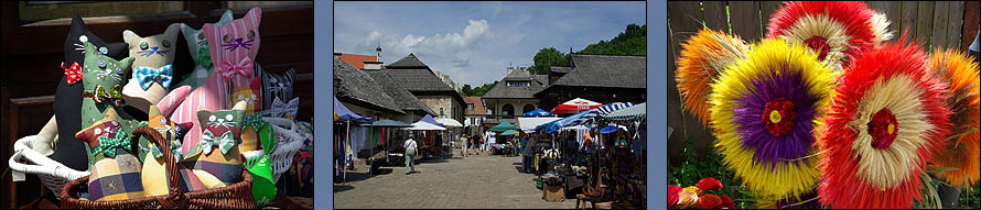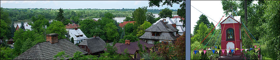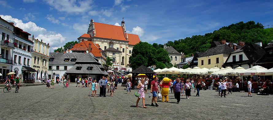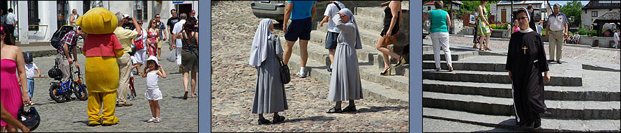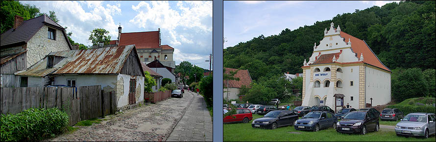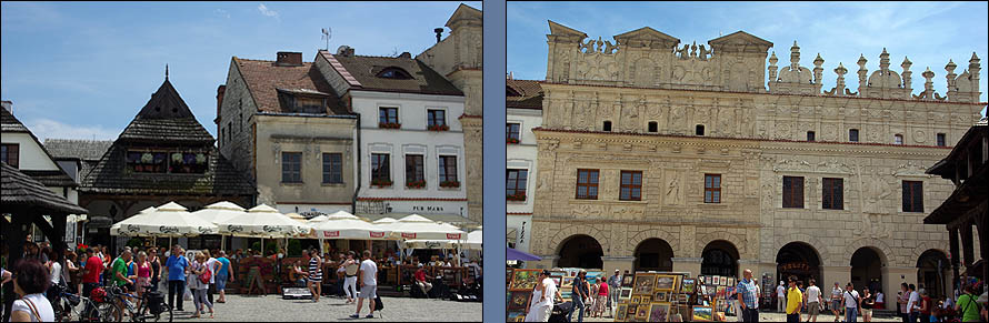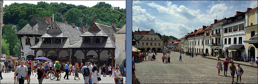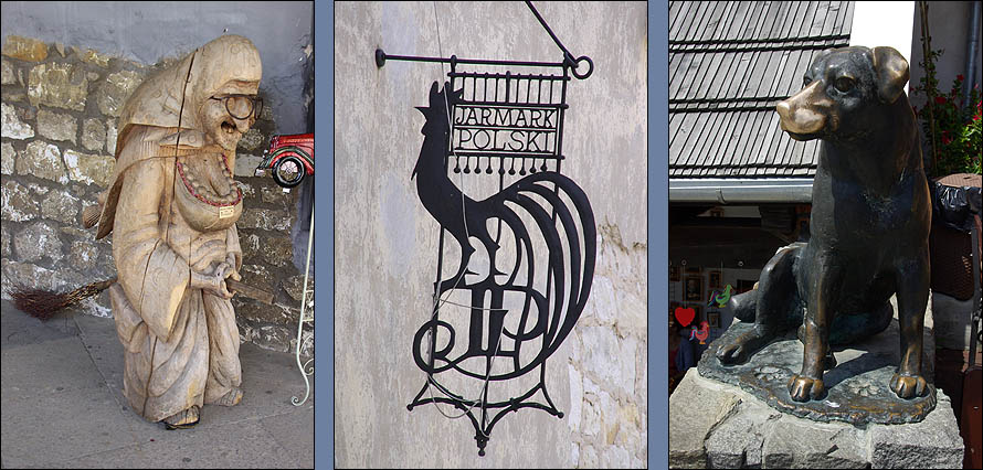 ![]() Fondé par Casimir le Grand au XIVème siècle, le village de Kazimierz Dolny connut une grande prospérité dont témoignent les magnifiques maisons des commerçants, avant de séduire les peintres aux XIX et XXème siècle. Perché au bord de la Vistule, principal axe marchand de l'époque, c'est aujourd'hui une destination de choix pour une journée au vert, à quelques dizaines de kilomètres de la capitale... la foule qui s'y presse en ce dimanche ensoleillé ne dira pas le contraire ! ![]() S'il ne reste pas grand chose du château et que l'imposante église style pâtisserie n'est pas indispensable, la Grand'Place est très belle, malgré ses multiples échoppes de bibelots made in China. ![]() ![]() Les maisons de plusieurs époques se côtoient, avec en point d'orgue les impressionnantes maisons jumelles des frères Przybylo, du XVIème siècle. Leur façades sont un joyeux crossover de décors de la Renaissance mélangeant des scènes de la vie quotidienne, des motifs antiques et des passages bibliques, comme St Christophe portant un micro-Jésus sur ses épaules ![]() ![]() ![]() Spécialité locale apparemment, les fleurs faites d'épis de blé colorés. Ci-dessous une calèche à touristes, une scène du même endroit l'hiver (sans doute un peu moins fréquenté), et à droite quelques-unes des centaines de motos qu'on a croisées sur ce "Chevreuse polonais". Beaucoup de belles machines modernes, rutilantes... reste à développer une conduite un peu plus sûre et envisager de porter casques et vêtements de protection pour faire vraiment motards, là c'est un peu la fête aux kékés, mais au moins la passion prend bien racine ici aussi ! ![]() ![]() ![]() ![]() ![]() | ||||||||||||||||||
