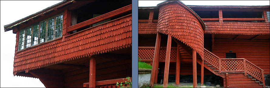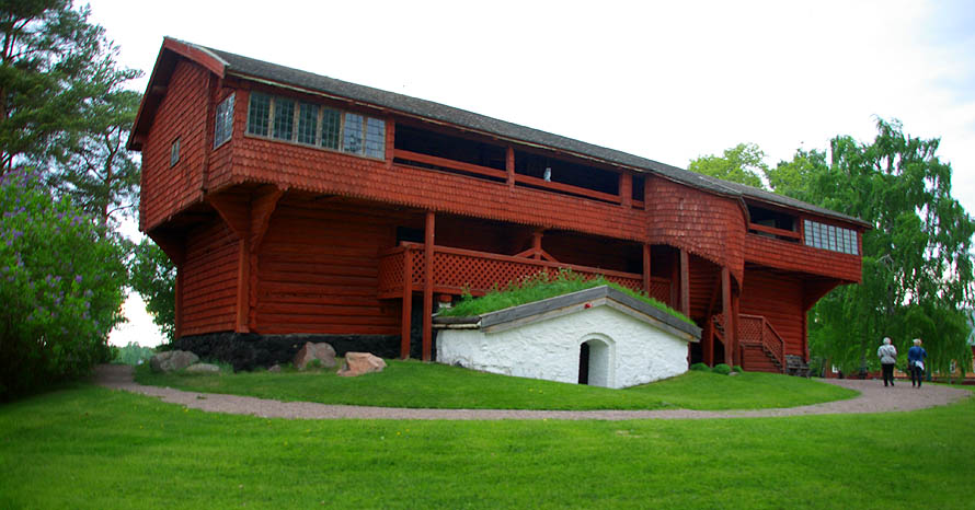 ![]() ![]() Ce château de bois très bien préservé, probablement l'un des plus anciens d'Europe, puisqu'ailleurs ils ont toujours été remplacés par de la pierre, est important dans l'histoire suédoise. Un des rois Gustav (on ne sait plus lequel, c'est comme les Louis chez nous) s'y était caché ; il parvint à échapper à ses ennemis en s'enfuyant par les latrines grâce à la dame du lieu. ![]() ![]() ![]() | ||||||||||||||||||