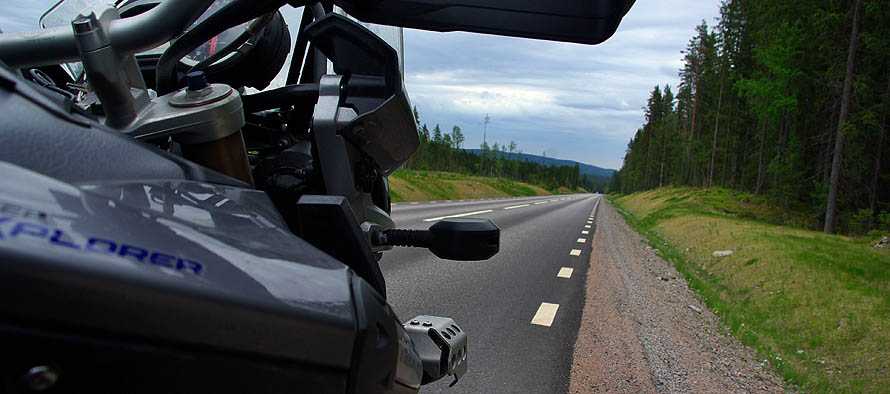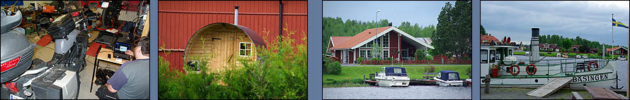 ![]() L'ancienne forteresse en restauration ci-dessus est-elle encore en Norvège ou déjà en Suède ? Difficile à dire tant la frontière était invisible. Qu'est-ce que ça doit être dans le grand Nord, où les tracés des frontières sont torturés et un même fjord traverse trois pays... Mais quand on trouve un office du tourisme au toit herbeux, que les prix s'affichent en couronnes suédoises (SEK au lieu de NOK) et que les plaques d'immatriculation suédoises deviennent majoritaires, on se dit que ça y est, on y est. ![]() Près de Torsby, nous avions espéré pouvoir visiter la maison de Selma Lagerlöf, auteure de Nils Holgerson, l'un des héros de mon enfance (oui, je rêvais déjà de voyages, et ma moto est grise comme une oie sauvage - pour la taille par contre, c'est raté), mais c'est fermé, comme presque tous les sites touristiques hors saison. A croire que hors des deux mois d'été, rien ne se passe ! La petite ville est très tranquille, propre mais de façon différente de la Norvège, plus... réaliste, d'une certaine façon. Difficile à expliquer, mais on a en effet changé de pays. ![]() La route est plutôt bonne, mais longue, très longue, avec beaucoup de vent et pas mal de cahots, tirant tout droit sur des centaines de kilomètres à travers la forêt. Pins, sapins, bouleaux, pins, sapins, bouleaux, pins, sapins... ![]()