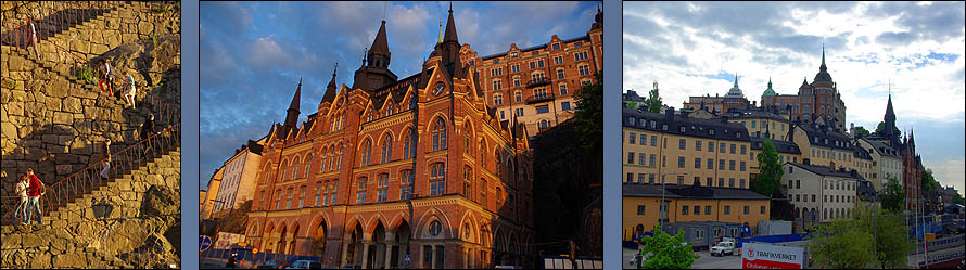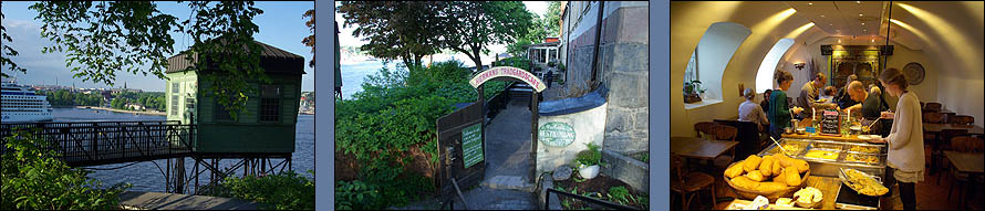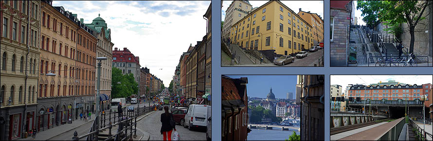 ![]() Au sud, sur une hauteur le quartier de Södermaln aligne ses belles maisons et ses rues penchées. Ci-dessus au centre, un superbe immeuble du XVIIIème au bord de l'eau. Ci-dessous, la rue principale Hornsgaten. ![]() ![]() Un charmant quartier ouvrier aux petites maisons de bois a survécu, évidemment pris d'assaut par les bobos. Un peu plus loin en continuant vers le sud, l'architecture se modernise, la population se fait plus jeune, restaurants et boîtes de nuit se multiplient - mais aussi églises et mosquées, on n'est plus à un constraste près. ![]() ![]() Ci-dessus, le quartier de Slussen, avec l'ascenseur Katarinahissen facilitant l'accès aux quartiers encore plus hauts. Le modèle d'origine à vapeur a été remplacé par celui-ci en 1936. Ci-dessous au centre, la célèbre pub de dentifrice installé là depuis 1906, s'illuminant de 1361 ampoules de couleur, qui faisait peur aux chevaux. ![]() ![]() Adresse originale et très sympathique que nous recommandons, le Red Boat : un hôtel flottant amarré sur la rive sud, aménagé dans un navire de 1914. Les cabines y sont exigües et la salle de bains commune, mais ce n'est pas trop hors de prix pour les standards de la ville, très joli, et avec un super petit déjeuner. ![]() Autre adresse conseillée, le restaurant végétarien Hermans Trödgärds Café posé en surplomb face à la fête foraine. On y mange très bien, à volonté, pour un prix très correct et avec une superbe vue sur le port. ![]() ![]() ![]() ![]() Ci-dessus à droite, un pannonceau d'interdiction de fumer... et de chiquer ! La chique est encore très encore en vogue ici. Beurk... Ci-dessous à droite, interdiction des pneus cloutés en ville ; pourtant l'hiver sur ces pentes raides, ça ne doit pas être de trop. ![]() ![]() | ||||||||||||||||||
