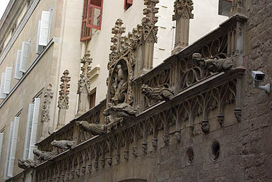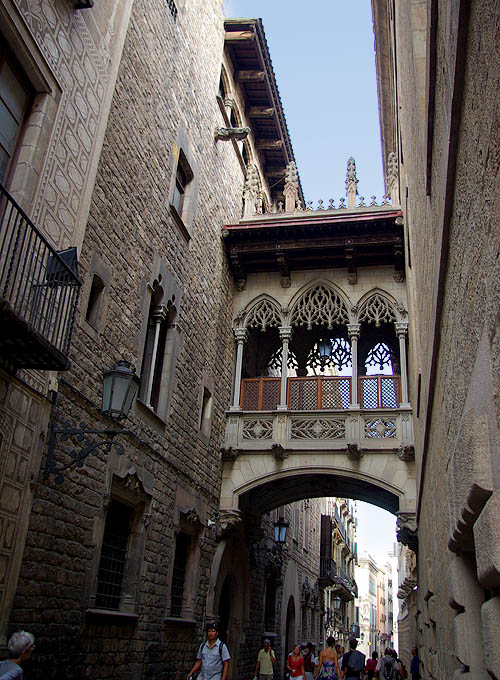 Ce charmant petit pont enjambe la Carrer del Bisbe, entre le Palau de la Generalitat et la Casa dels Canonges. Avec les amoureux se bécotant dessous, il fait très Pont des Soupirs de Venise.