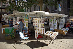 Ci-dessous à gauche, la plaça St Josep Oriol, sorte de place du Tertre où les artistes exposent leurs oeuvres.