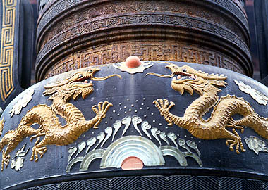 Détail d'un encensoir géant dans la cour du temps Xuanmiao.
