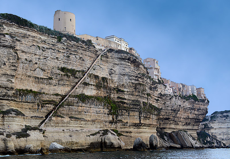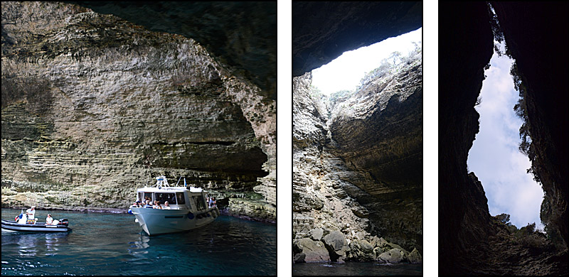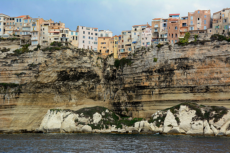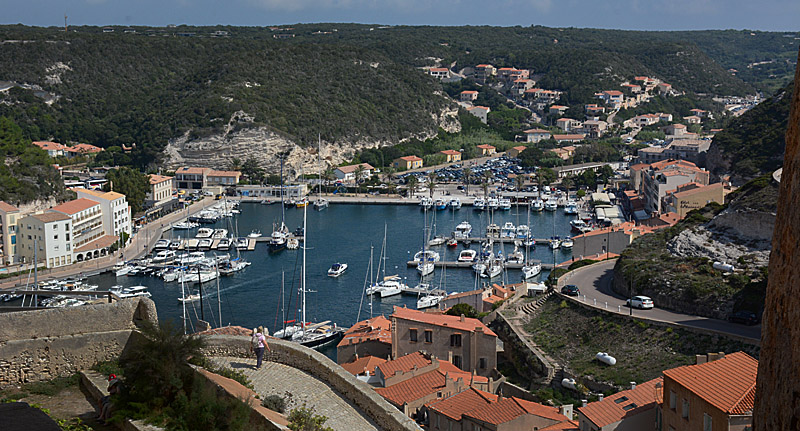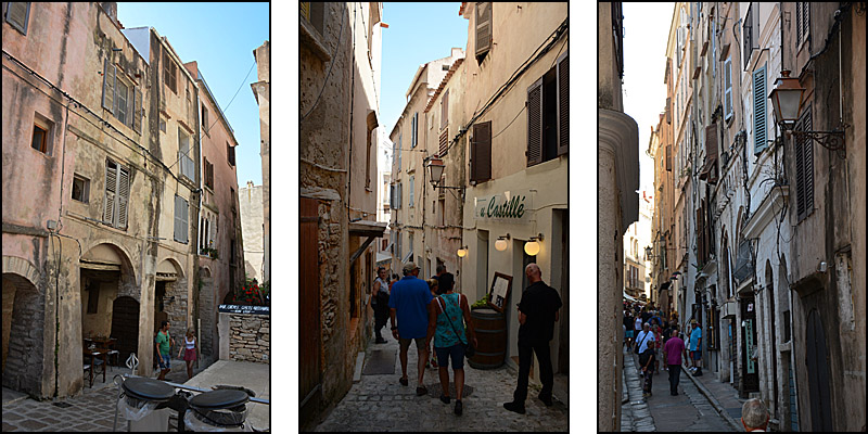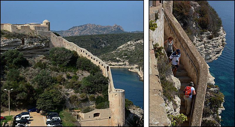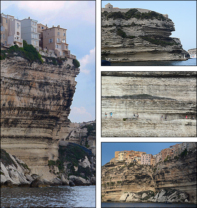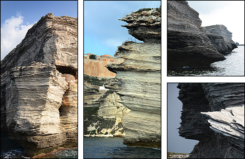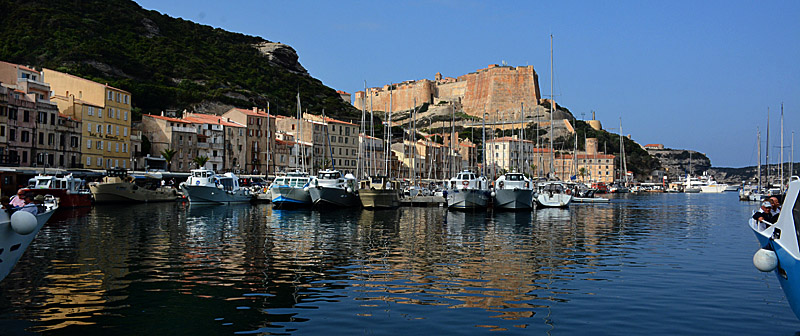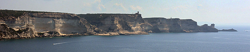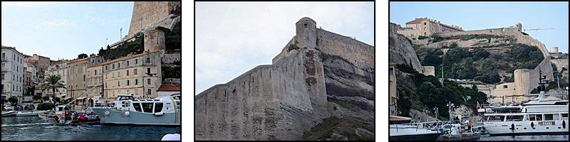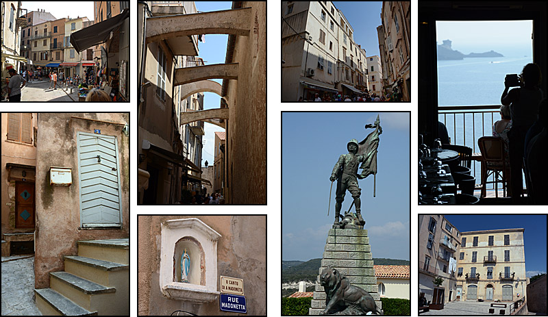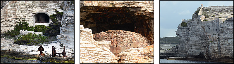 Bonifacio et la côte sud ![]() Bonifacio en met plein la vue dès l’arrivée sur le port, avec l’impressionnante citadelle en arrière-plan. ![]() ![]() On s’offre un tour en bateau à fond transparent pour voir la ville depuis la mer, avec les falaises, les calanques, les grottes, les poissons, le tout accompagné d’un commentaire marrant. 1H20 de balade sur un navire hybride agréablement silencieux, ça vaut vraiment le coup. ![]() ![]() Pas mal de vestiges militaires, comme des bunkers planqués dans les falaises ou un système de chaînes pour bloquer l'accès au port, sans oublier les plus anciens remparts... dans le genre imprenables ! ![]() ![]() Avec la forme de la falaise, les maisons du bord dépassent de plus de 15 mètres en surplomb des vagues... faut pas faire tomber un truc par la fenêtre ! ![]() ![]() Ci-dessus à gauche, ce bout de rocher est appelé le "gouvernail de la Corse", il en a la forme et la position si Bonifacio est la poupe de l'île. On dit que s'il se casse et tombe dans la mer un jour, la Corse sera ingouvernable... mais qu'on ne verra pas beaucoup la différence ! Ci-dessous à côté du phare, une des grottes où on peut entrer en bateau. ![]() Dans cette caverne aux eaux limpides, l'ouverture naturelle au plafond trace la carte de la Corse. ![]() ![]() ![]() Ensuite on monte à la vieille ville et on se promène dans ses ruelles penchées, dans l’ensemble les maisons elles-mêmes ne sont pas super entretenues mais le site est grandiose. ![]() ![]() ![]() ![]() ![]() ![]() ![]() ![]() Ensuite c’est reparti sur la côte, vers l’ouest à présent. On fait un crochet par Monacia d’Aullène mentionné par le guide, quelques maisons en pierre. Un peu plus loin le site de Roccapina est vraiment spectaculaire, on y déjeune dans une paillote devant le "rocher au lion". ![]()
