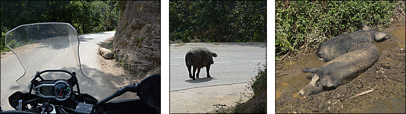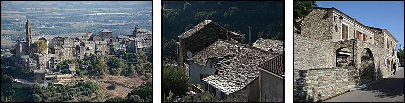 Costa Verde et Aléria ![]() Depuis Bastia, on descend la nationale le long de la côte avant de bifurquer vers Vescovato, sans transition nous revoici sur les petites routes tortueuses. Ça TOURNE ! On monte vers Loreto-di-Casinca, mais la route qu’on voulait est barrée pour travaux, et la déviation nous fait redescendre jusque sur la côte. ![]() Nouvelle tentative à hauteur de Penta-di-Casinca, et là ça passe. Les villages sont perchés sur la crête des montagnes, en équilibre qui semble précaire mais ça fait un bon moment qu’ils sont là. Cependant, vus de près, ils ne sont pas terribles. Les maisons anciennes sont en pierre grise et terne, sans une fleur ni un élément de décor, et les maisons plus récentes sont en crépi sans couleur, à peine fini, voire en parpaings ou en briques à nu. Heureusement, les paysages et la route, en général en assez bon état, sont à la hauteur. ![]() ![]() Pause devant une chapelle probablement abandonnée, après quelques centaines de mètres de piste de cailloux, vue superbe. ![]() On monte par une toute petite route via le col de Saint Antoine, avec son ancien couvent. ![]() A La Porta on fait quelques emplettes à la supérette car il n'y a généralement plus une seule boulangerie ni aucun autre commerce dans les villages. Pique-nique sur la place de l’église à Croce, pain chaud avec fromage de chèvre et saucisson corse, ça le fait. ![]() Ensuite Piedicroce (on a zappé le détour par Morosaglia pour la maison de Paoli, tant pis), mais on s’arrête à peine, plein de touristes et village sans trop d'attrait. Sur le bord de route, des cochons qui se roulent dans la fange, des chèvres, quelques vaches, la vigilance est requise à chaque tour de roue (comme toujours, certes). On croit voir un caillou sur le bord et pof, il se lève et traverse ! ![]() On attaque la descente par le col d’Arcorotta, et à nouveau la route est barrée. On essaie de passer quand même, espérant que la moto permette de contourner le chantier, mais après quelques kilomètres on réalise que non, même avec un trail : la route a totalement disparu ! Du coup retour en arrière et crochet par Piazzali, route particulièrement miniature mais en récompense les ruines du couvent d'Orezza, très romantiques. Fondé en 1485, il a été un haut lieu de la lutte des Corses contre Gênes, et c'est là que Bonaparte a rencontré Pasquale Paoli en 1790. ![]() ![]() Passage par le village de Cervione. ![]() ![]() Nous revoici sur la côte, où il ne faut que quelques minutes pour rejoindre Aléria, à travers une (LA) plaine agricole. ![]() Le site antique est très mal indiqué mais la visite du petit musée installé dans le fort offre de belles pièces et est intéressante, malgré des textes moyens et pas mal de fautes. Sur le site de fouilles lui-même on distingue les traces du forum et de quelques bâtiments, il y a là une très riche histoire depuis les Etrusques. ![]() ![]() ![]() Le soir on cherche notre AirBnB, dont l’adresse n’est qu’un point GPS que notre appareil basique ne sait pas lire. Du coup on repère le village sur la carte et on y monte, 15 km dans la montagne. Arrivés là haut on appelle pour savoir quelle maison c'est... pour s’entendre dire qu’ils sont dans la plaine, il ne fallait surtout pas monter ! C'est là qu'on apprend la découpe particulière des communes en Corse : les villages sont des "tranches" de territoire, avec le village "officiel" perché dans la montagne, sa "marine" (petit port) au bord de l'eau et le coeur de village (avec les maisons les plus modernes) à peu près entre les deux. Le tout, c'est de le savoir avant.