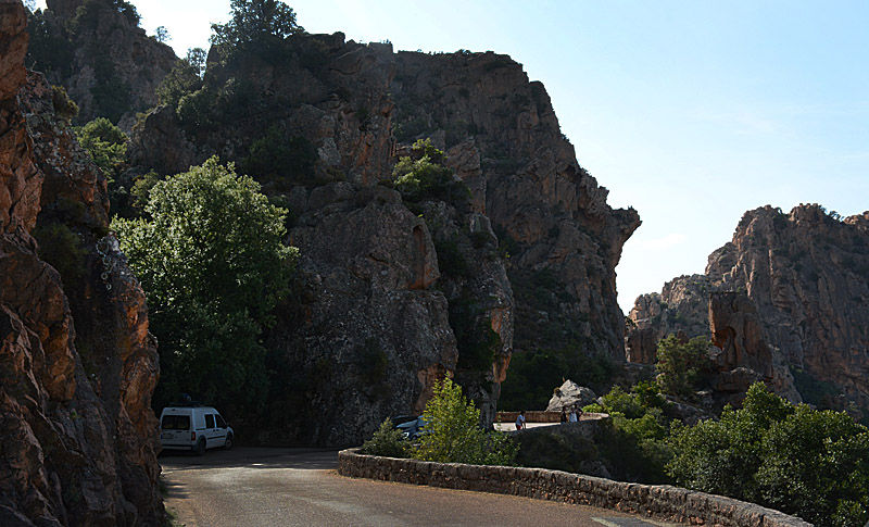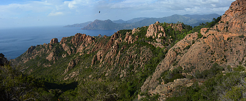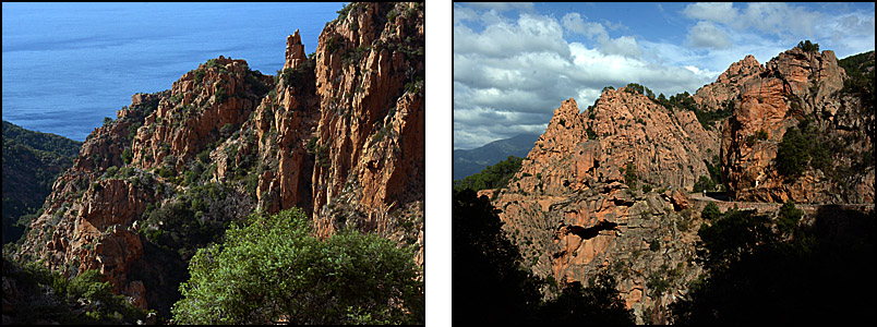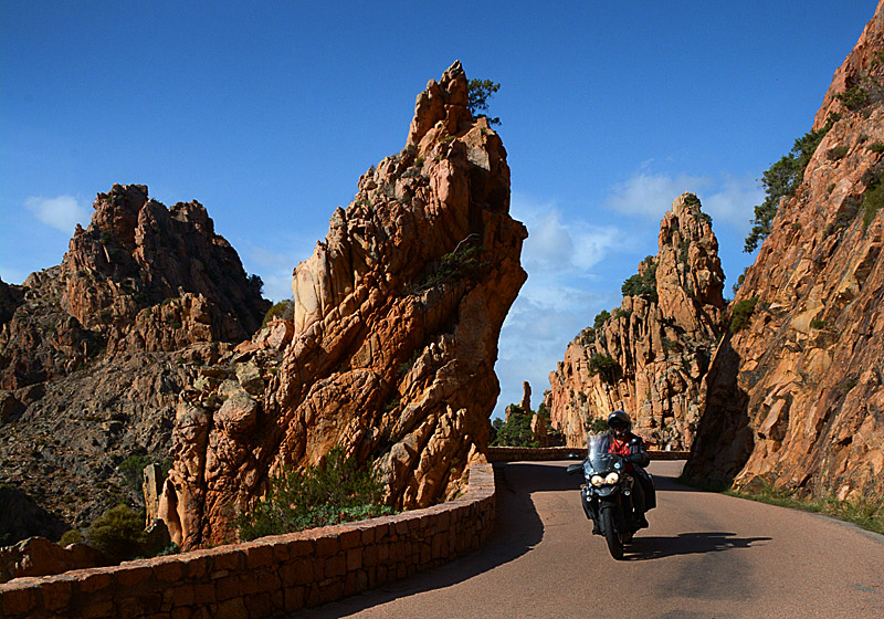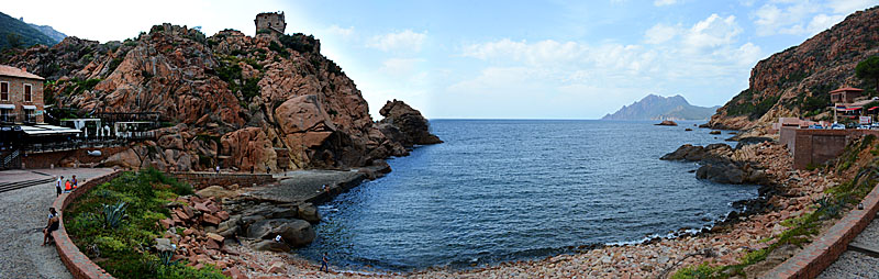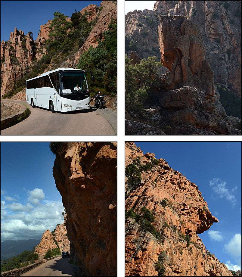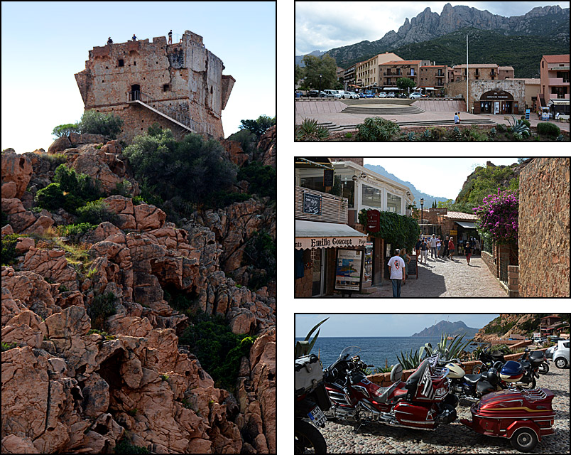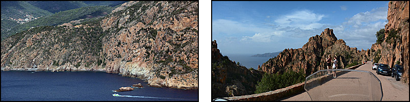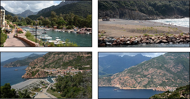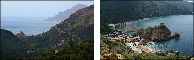 Côte ouest et Porto ![]() A l'origine, la petite ville de Porto était simplement la marine d'Ota qu'on a vu dans la montagne en arrivant. Aujourd'hui, c'est une toute petite station balnéaire bien agréable, lovée autour de sa baie, avec l'inévitable fortin, une plage de cailloux et une poignée de maisons. ![]() ![]() ![]() Notre petit hôtel motard est désert et fermé quand on arrive, et encore quand on y revient après avoir visité la ville. Pas grave, on enchaîne avec la principale attraction d'ici : les Calanques de Piana. L'aller-retour par la route jusqu'au village de Piana, dans la luminosité idéale de la fin de journée, restera comme un super souvenir motard ! ![]() Les cochons sur la route, c'est traître. Les touristes qui coupent les virages, c'est vache. Les Corses qui foncent sur les sentiers, c'est chaud. Alors que dire des cars de touristes, théoriquement interdits sur les petits routes, qui déboulent en prenant toute la chaussée ? Il faut parfois se jeter dans le bas-côté - quand il y en a ! - pour les laisser passer. Mais pas de quoi nuire à ce magnifique paysage. ![]() ![]() ![]() Le village de Piana est un peu endormi mais mimi, avec des cultures en terrasse, des pâturages en bord de falaise et une vue superbe. ![]() ![]() ![]() ![]() L'hôtel est toujours désert quand on revient, alors on va voir un voisin qui appelle le patron et c'est à la bonne franquette : on entre quand même, on prend la clé tout seuls, on se débrouille. Il n'y a personne d'autre. Décidément, la saison touristique se termine de façon abrupte ; on a bien fait de choisir septembre.