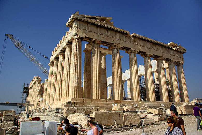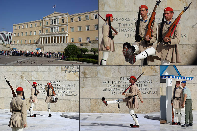 ![]() Nouvelle traversée de la mer Egée pour gagner le port du Pirée et l’impressionnante capitale grecque. Noyés sous la pollution, les célèbres monuments de son centre-ville en restent extraordinaires - bien que comme à Rome, ce n’est bien sûr qu’un bref aperçu. Juste à la sortie du port, une petite cahute vend des billets très intéressants, tous les transports publics en illimité pour la journée pour quelques Euros. Compris dedans, le bus express X90 relie directement le Pirée à l'Acropole, pratique. ![]() ![]() Nous attaquons la journée par la visite de l'Acropole, qui domine la ville moderne. L'ascension est assez plaisante sous le soleil assez doux et la température clémente, en plein été ce doit être autre chose. Même hors saison, le site est bondé, mais il est vraiment exceptionnel. ![]() ![]() Sur la vaste plateforme de l'enceinte de cette "ville haute", deux monuments restaurés sont les clous de la visite. Tout d'abord le Parthénon, avec sa célèbre géométrie parfaite. Proportions idéales, colonnes subtilement dyssimétriques et inclinées pour compenser les effets de la perspective... ![]() ![]() Dans tout le site, les archéologues sont constamment à l'oeuvre pour reconstituer le puzzle géant de toutes ces pierres écroulées. Dans les bâtiments debout, le plus beau reste le temple des Cariatides (ci-dessous), dont les femmes-colonnes portent à jamais la culpabilité de leur peuple qui a trahi l'alliance grecque devant l'armée perse, et ont donné leur nom à ce style architectural. ![]() ![]() Sur les flancs de la colline se trouvent aussi plusieurs amphithéâtres, dont le plus grand, ci-dessus, a été restauré et sert encore à l'occasion. Pavarotti y a par exemple chanté. ![]() ![]() ![]() En contrebas, entre les immeubles modernes, les sites ne manquent pas. Ci-dessus la porte d'Hadrien, et ci-dessous le temple de Zeus. Tous ne sont pas anciens, comme ci-dessus à droite, cet immense stade tout en marbre est en fait contemporain, malgré son style antique. ![]() ![]() ![]() ![]() Nous arrivons devant le Parlement juste à temps pour la relève de la garde... qui est à la hauteur de celle du palais de Westminster, de Wagah Border (entre l'Inde et le Pakistan), et de bien d'autres pays où la tradition militaire vire au spectacle millimétré qu'il est, honnêtement, assez difficile de prendre au sérieux. Tenue traditionnelle (fustanella) à jupette et pompons, jambes tendues à l'extrême, semelles ferrées frottant le sol jusqu'à laisser des sillons dans les dalles de marbre, visages figés, ordres aboyés, tout les ingrédients de la parade exacerbée sont réunis. Après l'inspection de près (littéralement, l'officer ausculte les gardes à 2 centimètres de distance), les touristes se prennent en photo avec les plantons. ![]() ![]() On revient tranquillement par la ville moderne. La circulation y semble assez calme et les commerces animés. ![]() ![]() |
