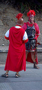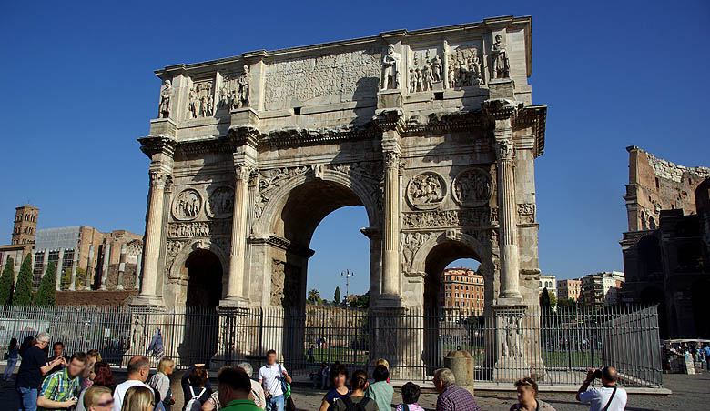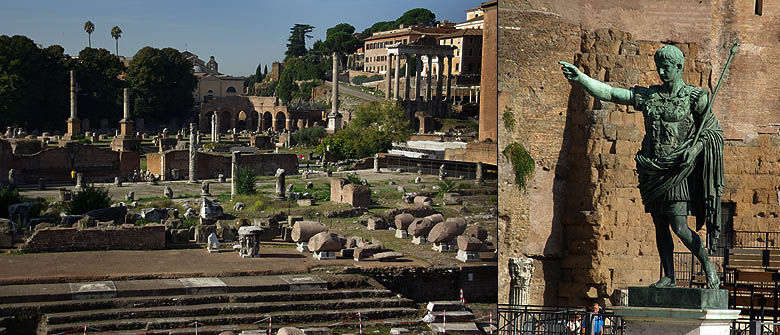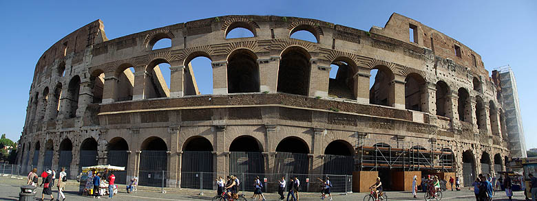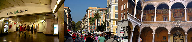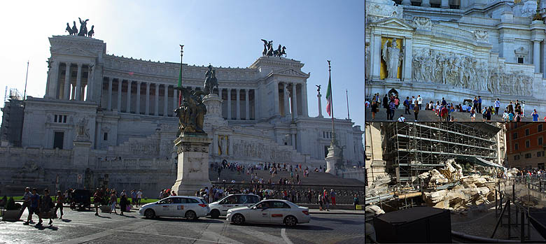 ![]() Rome est l'un des points-clés du voyage, et c’est une découverte étonnante, il faut avouer, même si ces quelques heures à terre ne seront bien sûr qu’un bref aperçu. Le port est à 80 kilomètres du centre, nous l’atteignons d’un coup de train et métro. Dès la sortie de la station, on se retrouve face au célèbre Colisée. Les immenses gradins, en divers états de conservation et de restauration selon l'angle, sont impressionnants et l'on regrette de ne pas avoir le temps d'en visiter l'intérieur. ![]() ![]() Ci-dessus, juste en face du Colisée, l'arche d'Hadrien. Ci-dessous quelques superbes colonnes sculptées, comme celle de Trajan. ![]() ![]() Le quartier comprend de nombreuses fouilles, des forums entiers dégagés, certains rebâtis, d'autres simples tas de pierres. Comme dans toutes les villes aussi chargées d'Histoire - et peu le sont à ce point ! - il est difficile de donner un coup de pelle sans tomber sur des vestiges ! Ils ont dû s'amuser pour creuser le métro. ![]() Il faut quitter les grandes avenues pour trouver les rues plus résidentielles et colorées, qui honnêtement nous suprennent par leur calme, la civilité de la circulation, la relative propreté, bref, bien loin des clichés. Du moins en son centre... ![]() ![]() Ci-dessus, l'écrasant et étincellant palais de Victor-Emmanuel. A droite, la fontaine de Trevi que nous attendions de voir depuis longtemps, mais elle est en travaux, comme bon nombre de monuments. Ci-dessous le Panthéon, un des plus anciens bâtiments romains encore debout. ![]() ![]() ![]() Les places imposantes ne manquent pas, comme sied à toute grande capitale. Ci-dessus la place Navona, avec son originale statue centrale et ses fontaines. Ci-dessous la place d'Espagne et ses escaliers. ![]() En longeant les quais du Tibre, on passe devant l'imposante Cour de Cassation, et un peu plus loin le fort circulaire St-Ange. Curieusement, on repère dans l'eau plusieurs carcasses de bateaux à moitié coulés ou moisis. Pour quelle raison sont-ils laissés ainsi ? ![]() ![]() ![]() Pour finir, un passage par le Vatican et sa fameuse place St Pierre. Point de pape au balcon, c'est plus calme ainsi. Du coup la place, bien qu'impressionnante, semble moins vaste que l'image qu'on peut en avoir via les médias (défilez le panoramique ci-dessous pour une vue d'ensemble, désolé pour les perspectives un peu malmenées). On croise sans surprise bon nombre d'ecclesiastiques de divers ordres, dont certains font office de guides touristiques. ![]() ![]() ![]() Cette excellente journée finit de façon moins agréable, car on galère un peu pour retourner au bateau. Les indications dans la gare sont extraordinairement peu claires (tout le monde semble d'ailleurs avoir du mal à s'y retrouver), et alors qu'on avait prévu pas mal de marge, on rate un train, et le suivant avance au pas sur une partie du trajet, s'arrête à toutes les gares et en pleine voie... Ce n'est que de justesse qu'on arrive au bateau, petit coup de stress mais heureusement sans conséquences. |