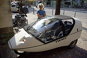 mais mû à la seule force des jambes. Une voiture à pédales pour adultes, en somme.