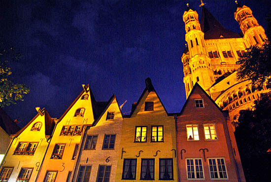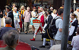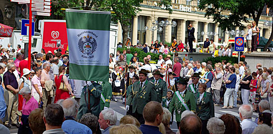 (une spécialité de Cologne), à une procession très colorée de gens en costumes (peut-être ceux des anciennes