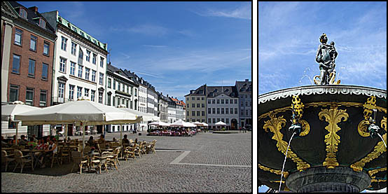 La fontaine Caritas (1610) de la place Gammeltorv (plus vieille place de marché de Copenhague, on fait commerce ici depuis plus de 800 ans)