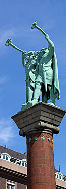 Ces joueurs de lur montés sur une colonne à côté de l'hôtel de ville