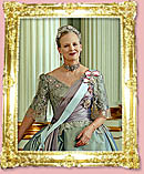 la reine et son époux français, le prince Henri de Laborde de Monpezat. Au centre se dresse la statue équestre