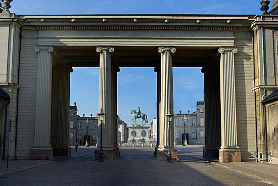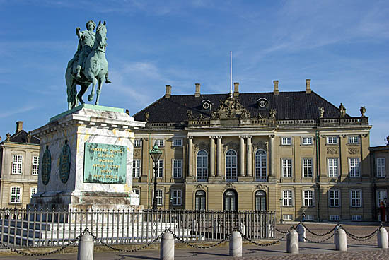 Amalienborg Plads (ci-dessous) est bordée de palais où réside