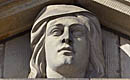 composée des queues entrelacées de quatre dragons. Chaque fenêtre est surmontée d'un personnage pittoresque,