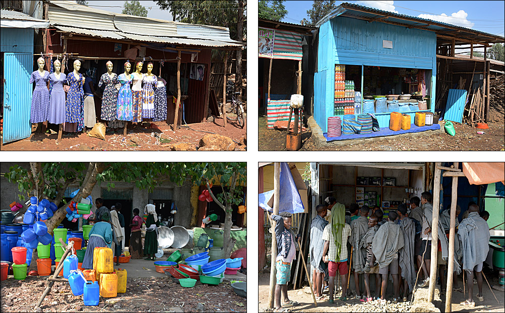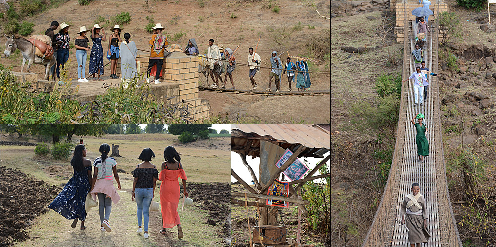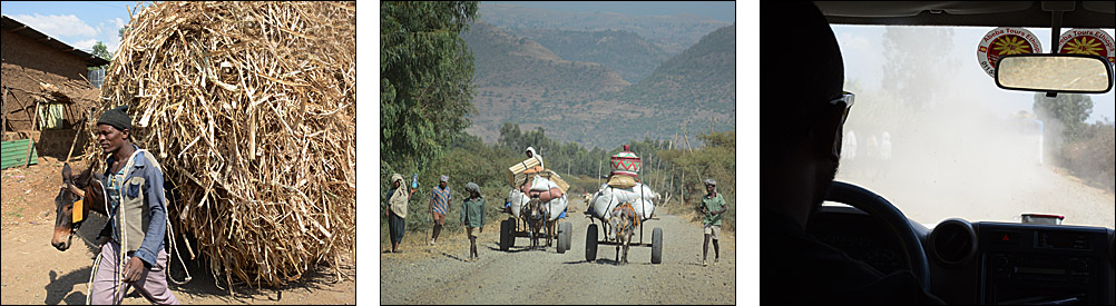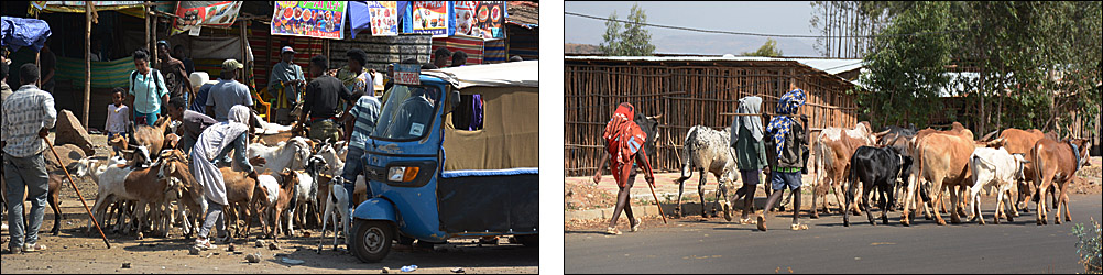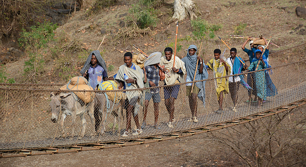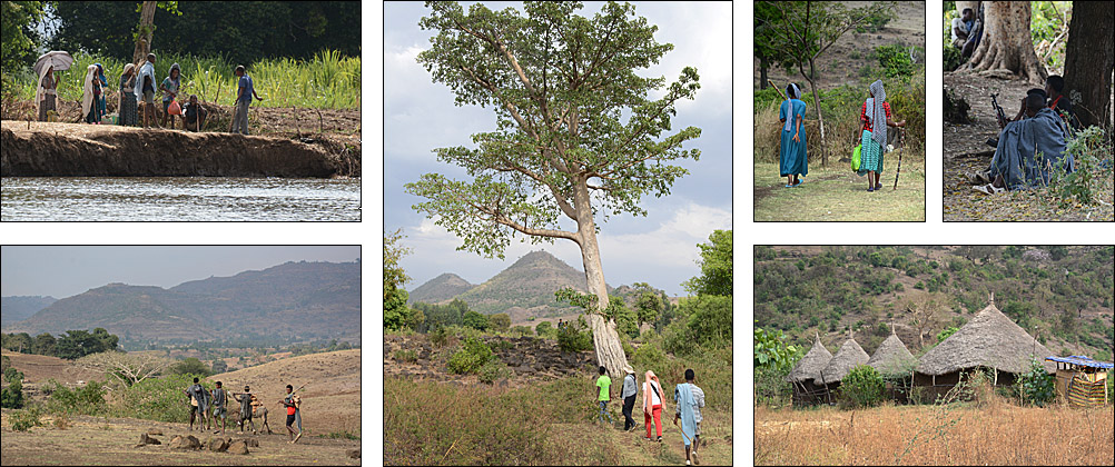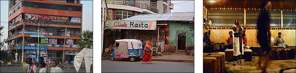 ![]() La route qui mène aux chutes du Nil Bleu est une piste de gravier, bordée de maisons à ossature de bois couverte de terre crue, parfois de tôle ondulée. Elle traverse des villages et des petites villes dépourvus de trottoir, où le bétail est omniprésent, ainsi que la poussière soulevée par les véhicules. Il ne fait pas si chaud grâce à l'altitude. Partout des échoppes en tôle ondulée bordent la voie et les gens semblent toujours fort occupés. ![]() ![]() ![]() ![]() Aujourd'hui, 80% de la vaste population de l'Ethiopie vit encore en zone rurale, une proportion importante qui devient rare ailleurs. Du coup, on ne voit pas de bidonvilles autour des centres urbains, presque pas de machines agricoles, les techniques agraires sont archaïques mais tout le monde a du travail. Qu'en sera-t-il pour les générations qui arrivent ? En tous cas toute la région, bien irriguée notamment par le lac et les affluents du Nil est couverte de champs. ![]() Ici, le Nil est un fleuve assez calme (même s'il faut se méfier des crocos), que l'on traverse avec un petit bac pour aller voir les chutes renommées. ![]() Vingt minutes de marche dans un paysage pastoral, entre plantations de canne à sucre et d'oignons bien verts, parcourus par des bergers, des hommes avec leur bâton (parfois une mitraillette) sur les épaules, aux vêtements couleur de terre et de poussière, et des femmes en robes longues bleu canard ou vert, un grand châle sur la tête... conduisent aux chutes elles-mêmes. ![]() ![]() A l'arrivée, les chutes sont un peu décevantes. En effet elles ont perdu les 9/10e de leur splendeur à cause d'un barage hydroélectrique installé juste en amont. Il y encore vingt ans, l'eau arrivait jusqu'à l'endroit d'où la photo ci-dessus est prise, en un vaste arc-de-cercle qui devait être impressionnant. Le filet d'eau aujourd'hui semble bien maigrichon, suffisant à peine à irriguer les villages des alentours... qui ne bénéficient même pas de l'électricité produite. C'est quand même une balade agréable. A noter que les huttes que l'on voit ci-dessus à droite de l'image ne sont pas un hameau traditionnel, mais un lodge de luxe, comme il y en a dans tous les hauts lieux du pays - mais au moins en faisant couleur locale. ![]() ![]() Sur le pont suspendu deux Ethiopie se croisent sans se rencontrer : les jolies jeunes filles modernes en excursion, enchaînant les selfies et les poses "kawaï", et les pasteurs tout droit arrivés du Moyen-Age avec leurs bêtes et leurs baluchons. ![]() ![]() En sortant d'un petit resto le soir (ça semblait bien copieux, avant qu'on réalise que les assiettes suffisantes pour bien sustenter Frédéric étaient prévues pour être partagées à plusieurs...), on se fait happer par une charmante et fort expansive jeune femme dans un bar d'où sortait de la frénétique musique traditionnelle, et où dansaient d'autres belles filles et jeunes hommes, en tenue locale. Ils se trémoussaient sur le rythme déchaîné, avec la danse typique d'ici qui consiste surtout à remuer super vite les épaules d'avant en arrière sans bouger les bras, se déhancher de façon fort suggestive, et faire tourbillonner leur chevelure énorme. La bière coule à flot, les pourboires aussi... ![]() |