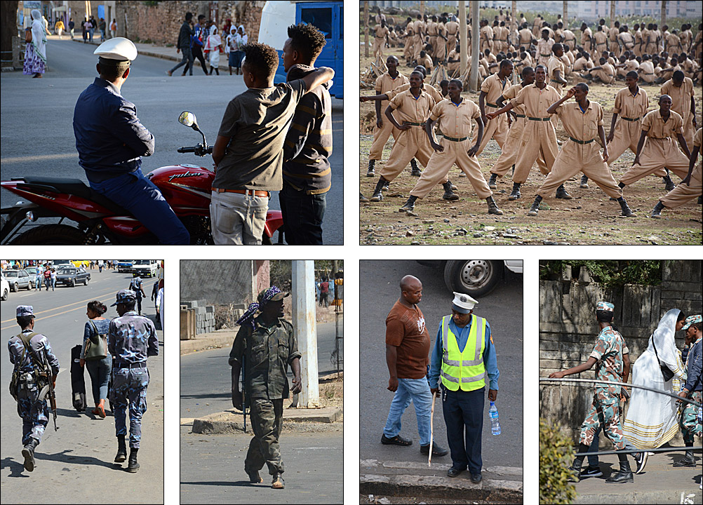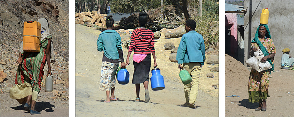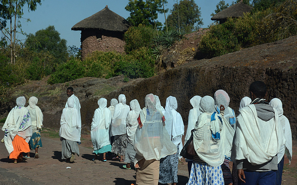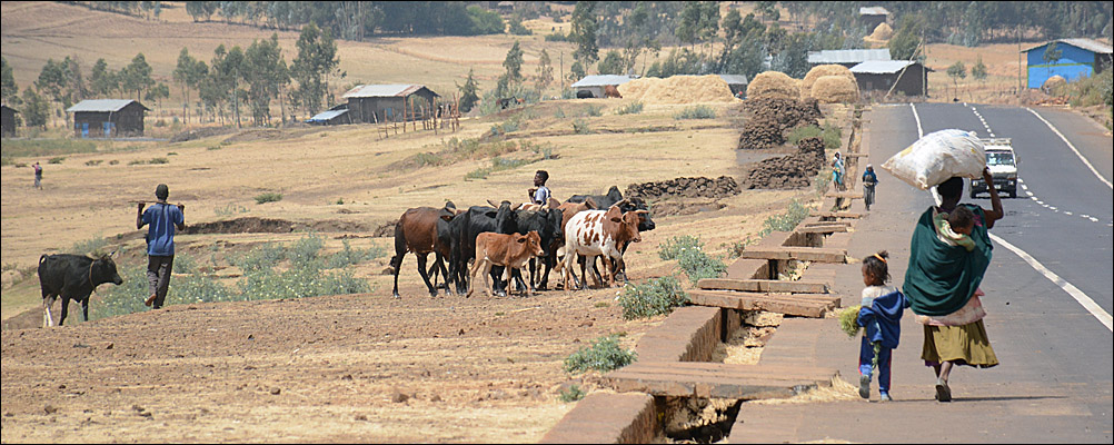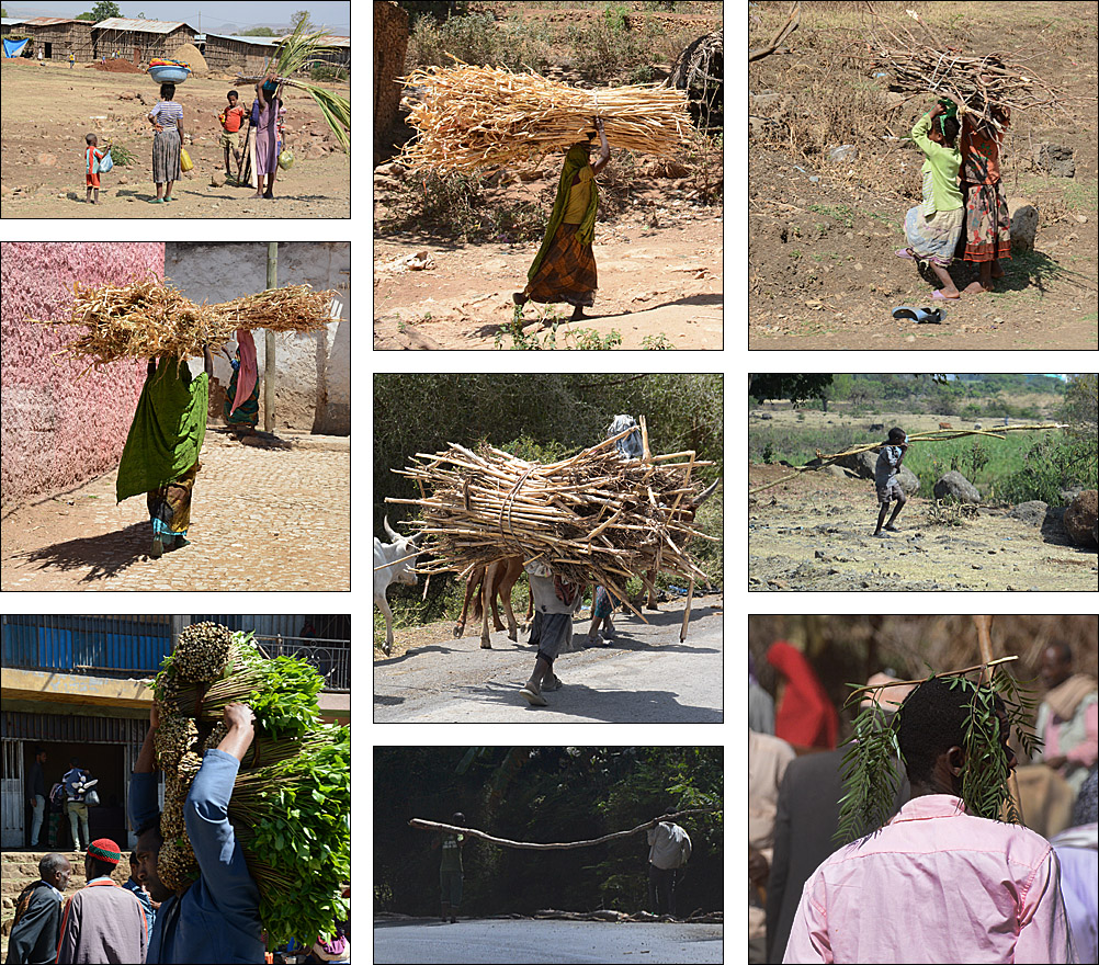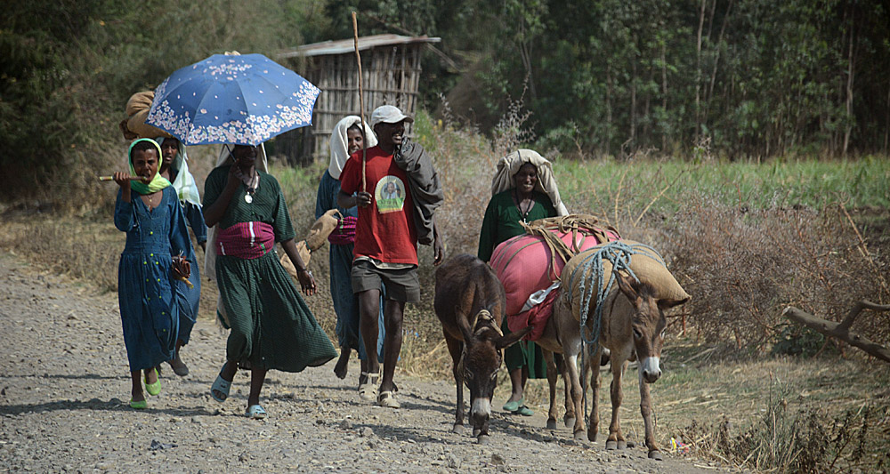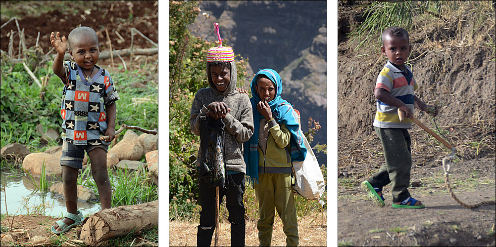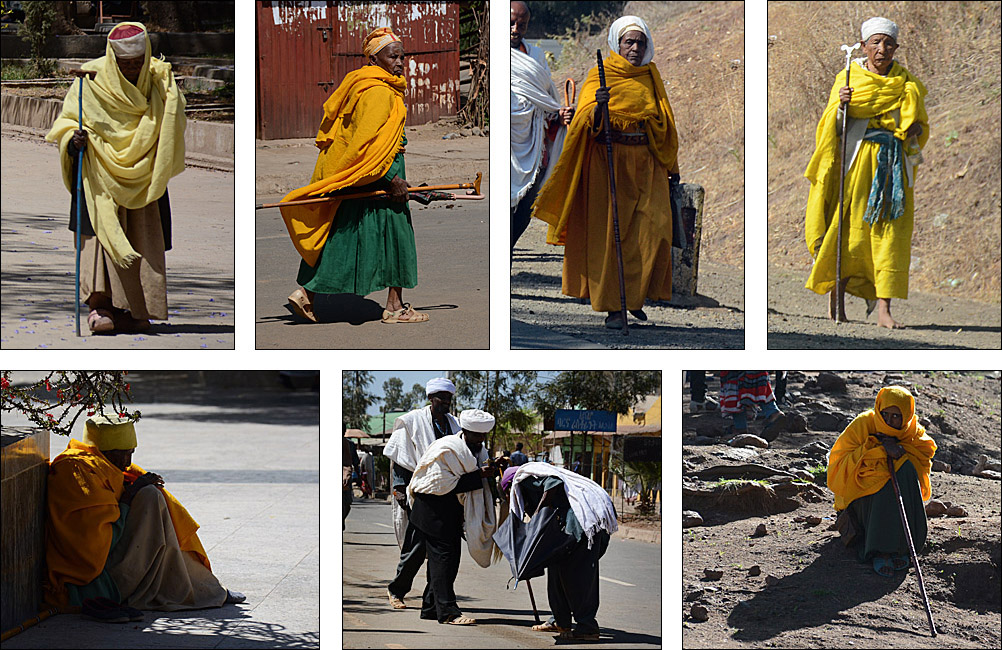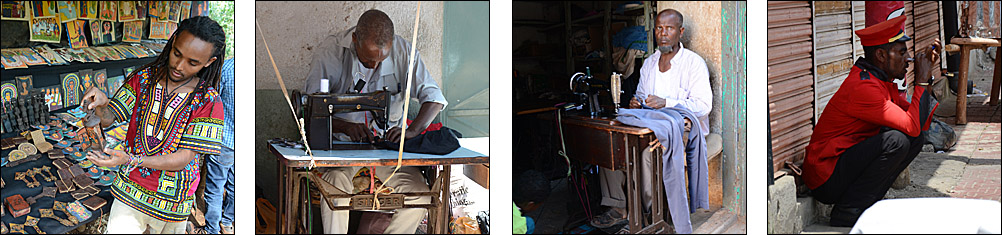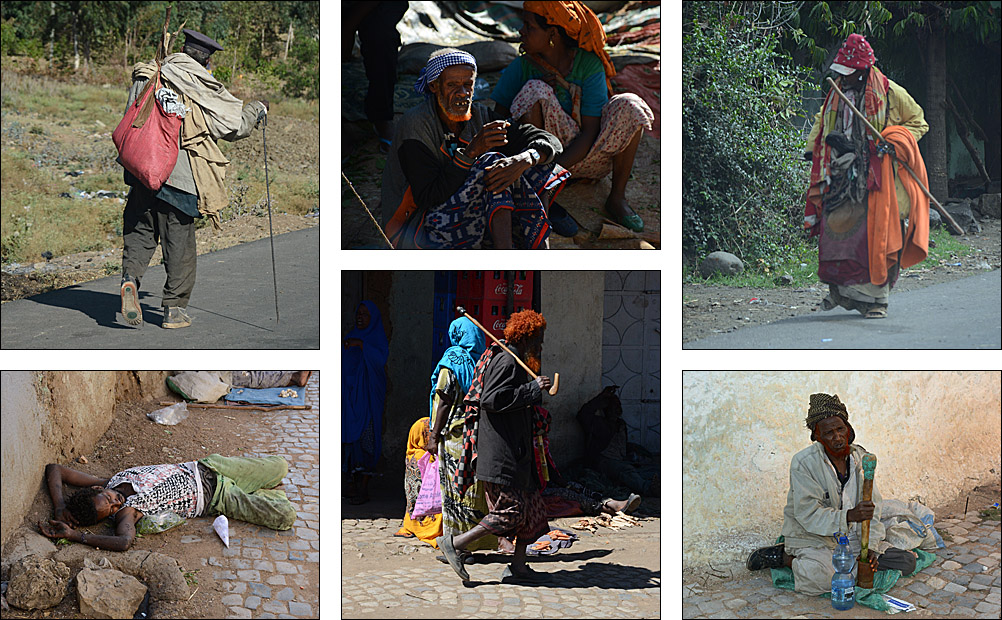 | Si d'habitude nous ne prenons guère de photos des gens, en l'occurence ce ne sont pas les portraits qui manquent. Pardonnez-nous cette page un peu longue, mais le tri a été fort difficile et ce n'est là qu'un petit échantillon des rencontres ou des visages aperçus, souvent dans un labeur manuel ingrat, mais aussi avec le sourire malgré tout.              A chaque peuple ses tenues traditionnelles, plus marquées chez les femmes : pantalon et robe par dessus pour les Harari, enveloppées de voiles pour les Amahri, une sorte de pagne long traînant au sol pour les Oromos, assez rarement des tchador ou burqa... et mode anonymement occidentale pour les jeunes branchées de toutes origines !  Les femmes ont des chevelures magnifiques, extraordinairement volumineuses ou tressées de mille façon raffinées... mais le plus souvent cachées sous leur foulard. A noter que les femmes jouissent en Ethiopie d'un certain respect, elles ont le droit de propriété et de vote, le divorce est aisé et elles ont une représentante au gouvernement.        Le châle traditionnel dans lequel les hommes des montagnes s'enroulent est le shamma, protégeant tant de la poussière que du vent ou du soleil.