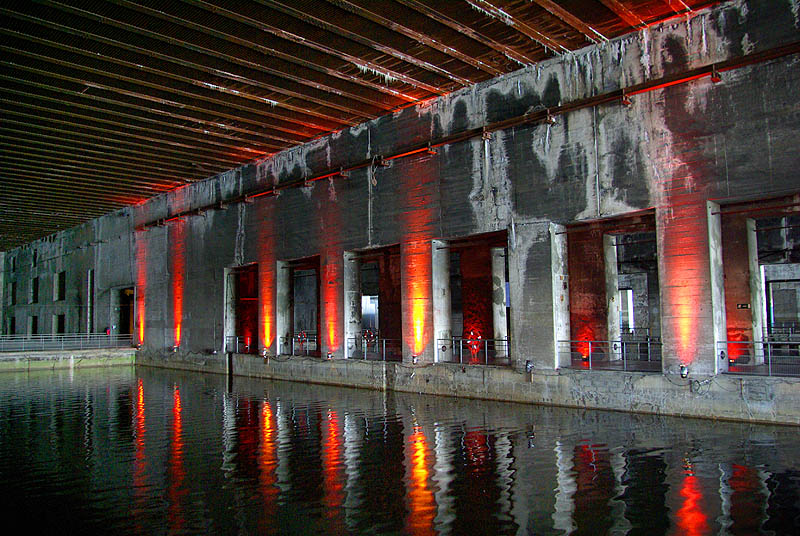 Aujourd'hui transformé en lieu d'exposition, le bâtiment reste très impressionnant et fantomatique. Ses interminables perspectives de béton brut éclairées de rouge sanglant, baignant dans l'eau des bassins où ne flottent plus que les souvenirs des sous-marins, créent une impression étrange, qui n'est d'ailleurs pas sans rappeler celle des citernes romaines d'Istanbul, et qui se marie très bien avec la singulière expo qu'on y a vue.