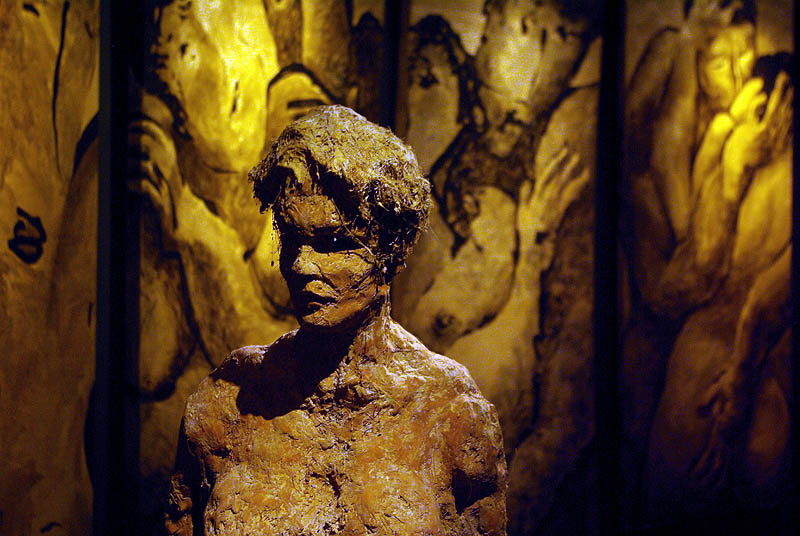 Les peintures donnent un très bon contrepoint, avec des personnages au contraire imbriqués les uns dans les autres, mais peut-être tout aussi solitaires. On a notamment beaucoup aimé la série de dessins sur l'échec de Dieu et du jugement dernier, d'un humour iconoclaste et désespéré. L'ambiance obscure et mystérieuse du site amplifie l'effet. En tous cas, ce sont des oeuvres creepy mais remarquables, qu'on n'est pas près d'oublier.