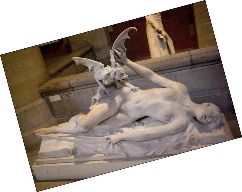 ![]() ![]() A droite, magnifique buste d'Augier Ferrier, 1674. A gauche, d'Ambroise Fredeau en 1657, "Guillaume de Tolose et les démons". Ci-dessous, le Cauchemar, d'Eugène Thivier, fin XIXème siècle. Vite, appelez Buffy ! ![]() |