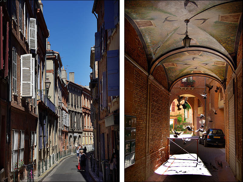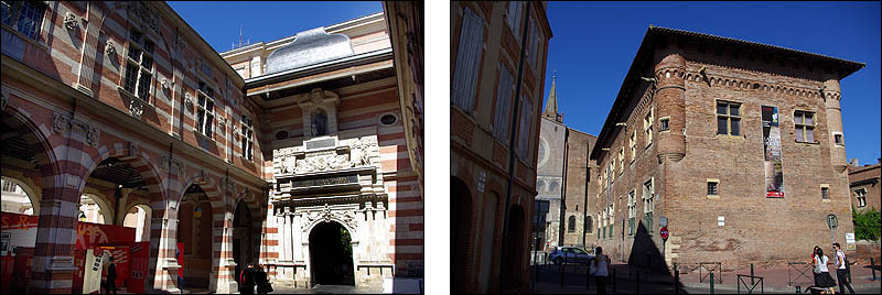 ![]() Toulouse s'est développée à partir de la ville antique sur une courbe de la Garonne. Capitale du Languedoc et centre artistique de premier plan, enrichie par le commerce du pastel, son parlement rayonnait sur un vaste territoire. Ci-dessus, rue du Taur, avec l'église du même nom ci-dessous. La brique est omniprésente, justifiant aisément le surnom de "Ville rose". ![]() ![]() ![]() ![]() ![]() Au centre, le Capitole, emblème de la ville et du pouvoir municipal depuis le XIIème siècle. Il abrite aujourd'hui l'Hôtel de Ville et un théâtre. ![]() Ci-dessus à gauche, cour intérieure du Capitole. A droite, le musée St Raymond, dernier vestige de l'abbaye de St Sernin, avec la basilique au fond. ![]() A gauche, le Pont St Pierre avec le dôme de la Grave. A droite et ci-dessous, le Pont Neuf. ![]()