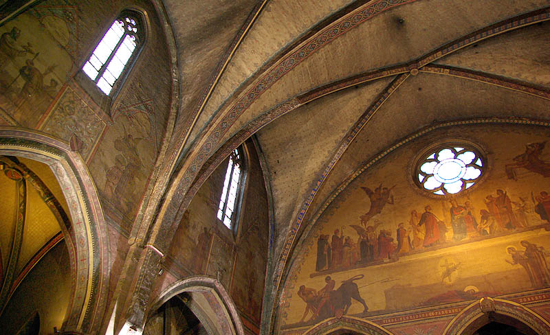 La basilique Saint-Sernin fait l'objet d'un classement aux monuments historiques depuis 1840, et est patrimoine mondial depuis 1998, au titre des Chemins de Saint-Jacques-de-Compostelle en France. Ci-dessus à droite, la porte Diegeville, du XIème siècle. Ci-dessous, les fresques de la Résurrection et le martyre de St Saturnin. ![]() ![]() ![]() ![]() A gauche, un Christ du XIIème siècle d'une étonnante modernité. A droite, encore un orgue Cavaillé-Coll, qui a réalisé plus de 500 instruments dans sa carrière ! ![]()