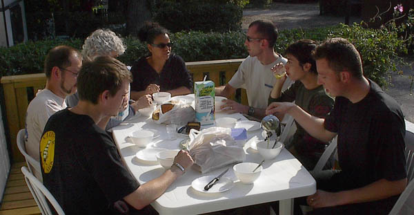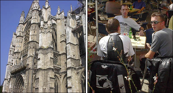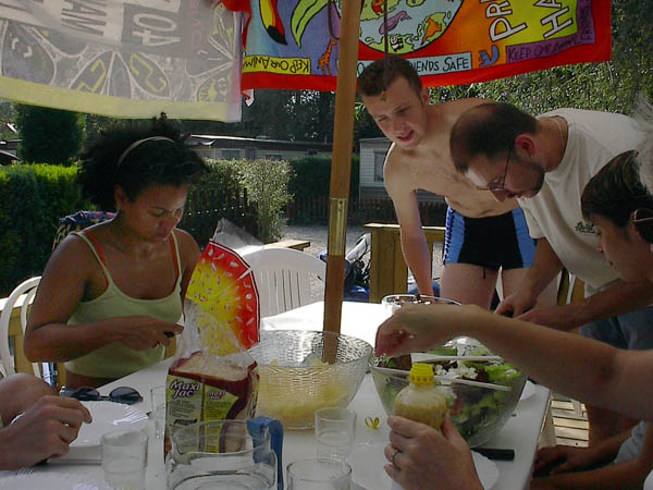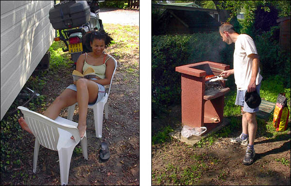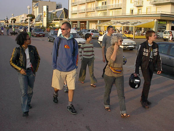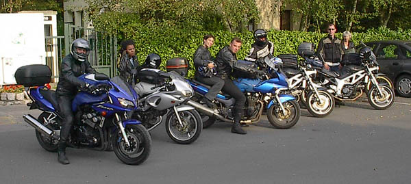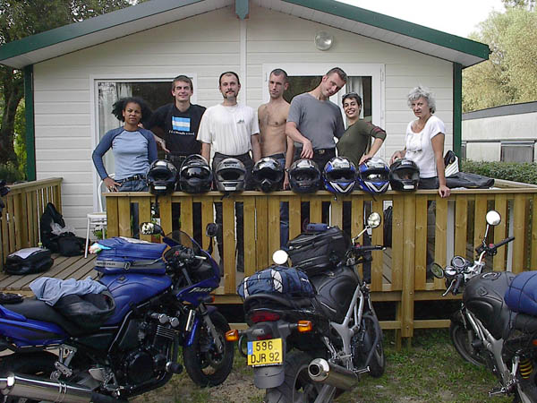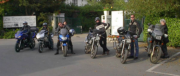 RV en deux temps ce samedi matin et départ à peu près à l'heure prévue, un bout de périph et de banlieue pas très marrant mais nous voilà bientôt sur les nationales. Temps superbe, routes dégagées, moteurs qui ronronnent et compagnie agréable... que demander de plus ? Il y a là Alan et Charlotte en ZR-7, Laurent en Fazer, Rémi en SV, Marco aussi, ainsi que Colette mais en version S avec un pot qui fait un joli son... Et enfin Liliane et moi sur ma bonne vieille Transalp. Première étape à Beauvais, on assiste à une scission du groupe, pendant que certains vont jeter un oeil à la cathédrale juste avant qu'elle ferme, d'autres qu'on ne citera pas (m'enfin on sait qui c'est, hein, surtout qu'il y a la photo ;-) ) prennent un pot à l'ombre d'un café. ![]() Finalement, on a aussi cassé la croûte à Beauvais, mais le service est interminable et du coup on a zappé la seconde pause prévue à Amiens pour tirer d'une traite jusqu'à Rang-du-Fliers, presque sans se perdre. On débarque au camping sous les regards un peu surpris des vacanciers en famille. Le bungalow est plutôt sympa et le personnel charmant. Après un petit goûter, la plage nous appelle déjà (hou-hou !). ![]() Il y a bien plus de monde que d'habitude à cette saison, mais comment les en blâmer avec ce temps ? Baignade pour les uns, bronzette au soleil couchant et lecture pour les autres... et pis d'abord Marco, qu'est-ce qu'il a mon freesbee mou ? ![]() ![]() Dîner dans une crêperie pas mal, avec des crèpes à la raclette plutôt consistantes et bien goûtues. ![]() ![]() Dernier petit thé et tout le monde au pieu, après la route et la plage, tant pis s'il y en qui ronflent ;-) Au matin, on remercie bien nos courageux volontaires qui se sont dévoués pour aller chercher croissants et pains au chocolat pour le breakfast. ![]() Après quelques courses, ben... on retourne à la plage, pardi ! Même qu'on y est très actifs, raquette, freesbee, nage à contre-courant... ![]() ![]() ![]() Ca creuse tout ça, alors en revenant Laurent s'occupe du barbecue sous la surveillance attentive de Colette, pendant qu'on est plusieurs à faire un tour à la piscine du camping. Bon, petite et pleine de gamins délateurs, mais un peu d'eau douce et presque tiède, ça fait quand même du bien. Mais pas autant qu'une bonne salade et quelques saucisses ;-) ![]() ![]() On range ensuite le chalet qu'on a eu le temps de mettre pas mal sens dessus dessous en une nuit à huit. ![]() Et voilà, l'heure du départ approche. Une dernière photo souvenir... ![]() A bientôt pour de prochaines balades ensemble, merci les gars et demoiselles, ce fut un excellent week-end en votre compagnie. ![]() ![]() Durée : 2 jours Participants : 8 personnes, 6 motos Distance parcourue : Environ 600 kilomètres Adresse à retenir : Camping des Tourterelles à Rang du Fliers | |