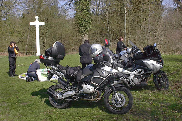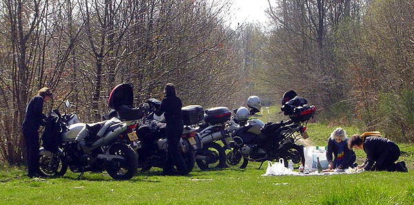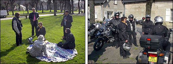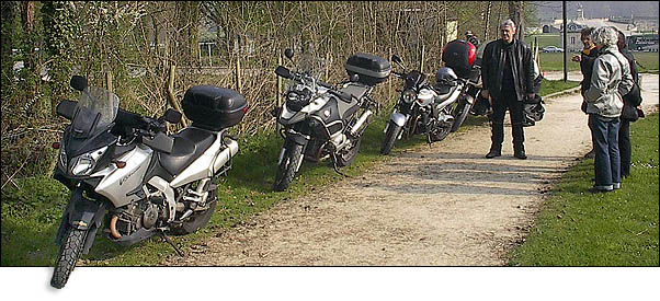 Départ dans le brouillard sur l'aurotoute du Nord, il fait limite frisquet, mais le soleil nous rassure dès qu'on dépasse Roissy. Oui oui, nous dit-il, ne vous en faites pas, je finis ma toilette et j'arrive. Il a tenu parole... Nous étions donc à 7 pour 4 motos : Frédéric et Liliane évidemment en DL1000, Pascal et Nadège cette fois en BMW GS1200 Adventure, Marie-Joe et Cécile sur l'increvable BMW K100, et Pascale en ZR-7. ![]() Premier arrêt au château de Chantilly, tout mimi sur son plan d'eau et cerné d'écuries. ![]() ![]() On passe ensuite par Senlis et sa petite cathédrale. Curieux, des confessions larmoyantes ont lieu en plein milieu de la nef plutôt que dans la discrétion d'un confessional ou au moins d'une chapelle. ![]() En traversant la fôret, la faim nous tombe dessus, hop, d'un coup. Alors on bifurque dans un petit chemin forestier, histoire que la GS et la DL puissent jouer au trail sur 500 mètres, et tant pis pour les routières qui suivent comme elles peuvent (très bien d'ailleurs). A un croisement, on déplie la nappe, et c'est pique-nique time ! ![]() ![]() ![]() ![]() Un anniversaire dans le petit groupe, alors... champagne ! On arrive enfin au village de Pierrefonds, avec de jolies maisons à l'entrée, dont une qui semble très ancienne. Plusieurs belles demeures aux alentours, et en haut, le chateau rebâti par Viollet-le-Duc au XIXème siècle. Il ressemble à un chateau médiéval tout neuf ! ![]() ![]() ![]() ![]() ![]() ![]() Encore un petit goûter sur l'herbe, et devant l'heure roulant plus vite que nous, nous relions l'autoroute A1 pour rentrer vaquer à nos occupations respectives. Nous n'avons fait qu'une partie du parcours prévu, mais c'est d'autant plus l'occasion d'y revenir car ce fut très sympathique ! ![]() Durée : 1 jour Participants : 7 personnes, 4 motos Distance parcourue : Environ 220 kilomètres Adresse à retenir : Un chemin au pif dans la forêt Road-book étendu de la balade : http://solrv.club.fr/B_083_C.html Merci une nouvelle fois à Moto-Vadrouilles pour ses bons plans ! ![]() | |