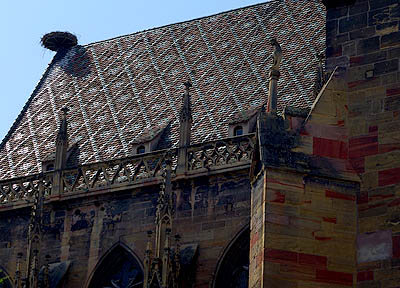 ![]() ![]() Cigogne parmi les bas-reliefs en façade de la cathédrale de Strasbourg |