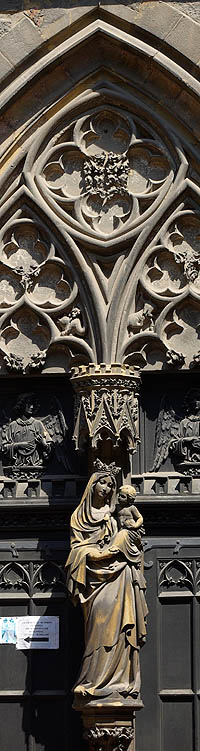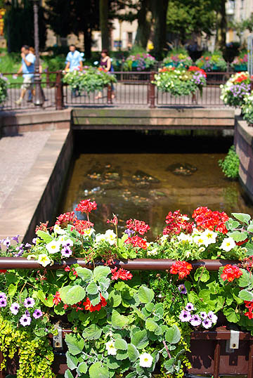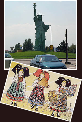 Ci-dessus un bout de canal, qui est tout ce qu'on aura eu le temps de voir de la "Venise alsacienne", dommage ! Quand on vous dit qu'il faudra y retourner... A droite, la chapelle de l'ossuaire, du XIIIème siècle, devenue corps de garde en 1575. Colmar est la ville natale du sculpteur Bartholdi, auteur de la statue de "la Liberté éclairant le monde", offerte à New York en 1886. A gauche, sa maison transformée en musée (inévitablement). Colmar est aussi la ville natale du dessinateur Hansi.