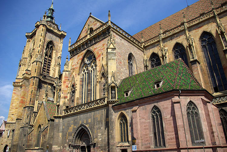 ![]() La collégiale St Martin, au toit de tuiles vernies proposant comme celui des maisons un support pour les nids des cigognes. Ci-dessous, la maison Unterlinden devenue un musée, puis rue St Martin et rue des Boulangers. ![]()
